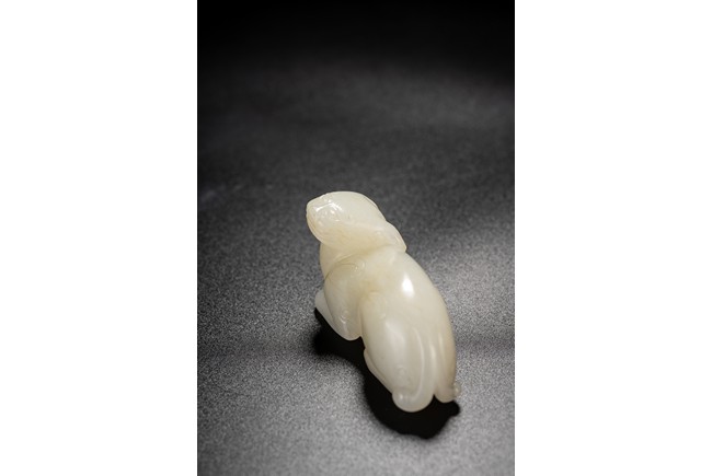 Qing Dynasty period. The mythical beast finely carved with its head turned to the side, the stone is of even white tone.