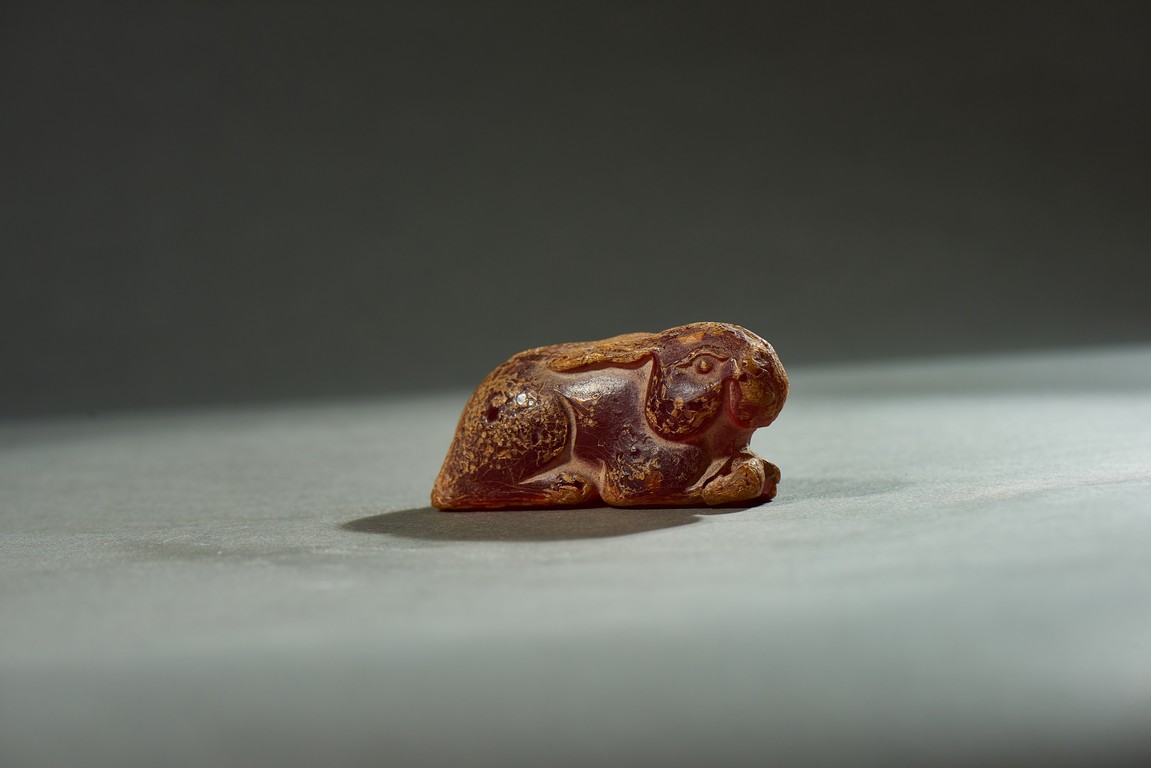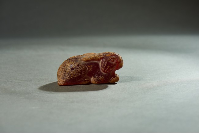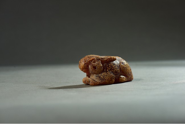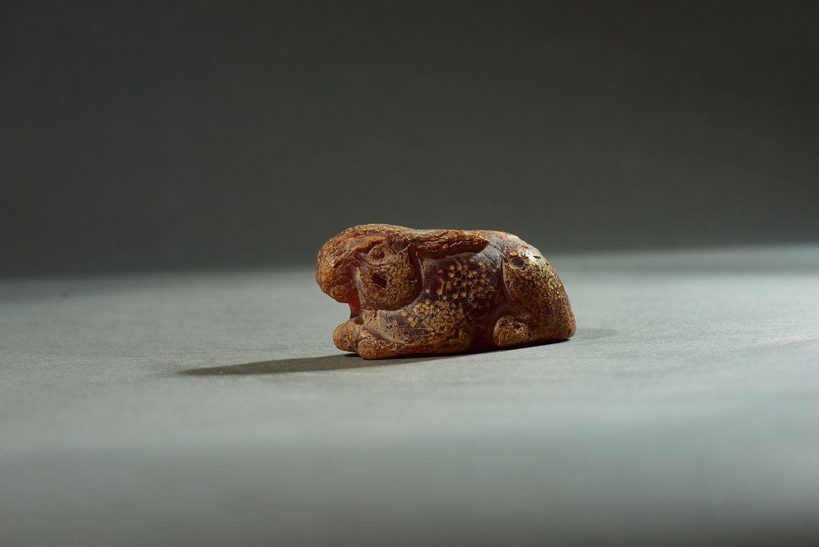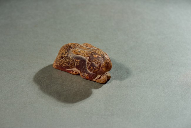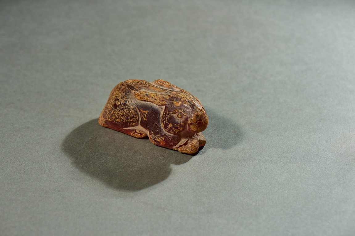 AN ARCHAIC AMBER CARVING OF RABBIT 老琥珀兔子