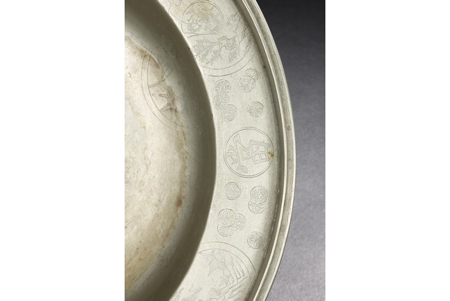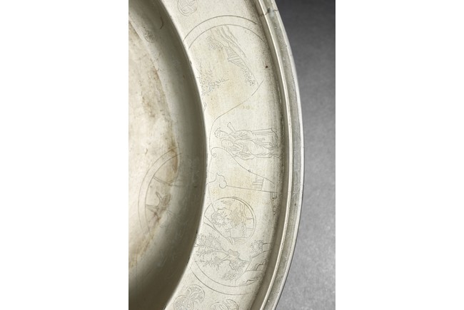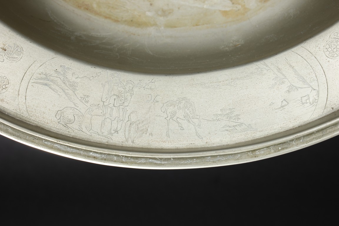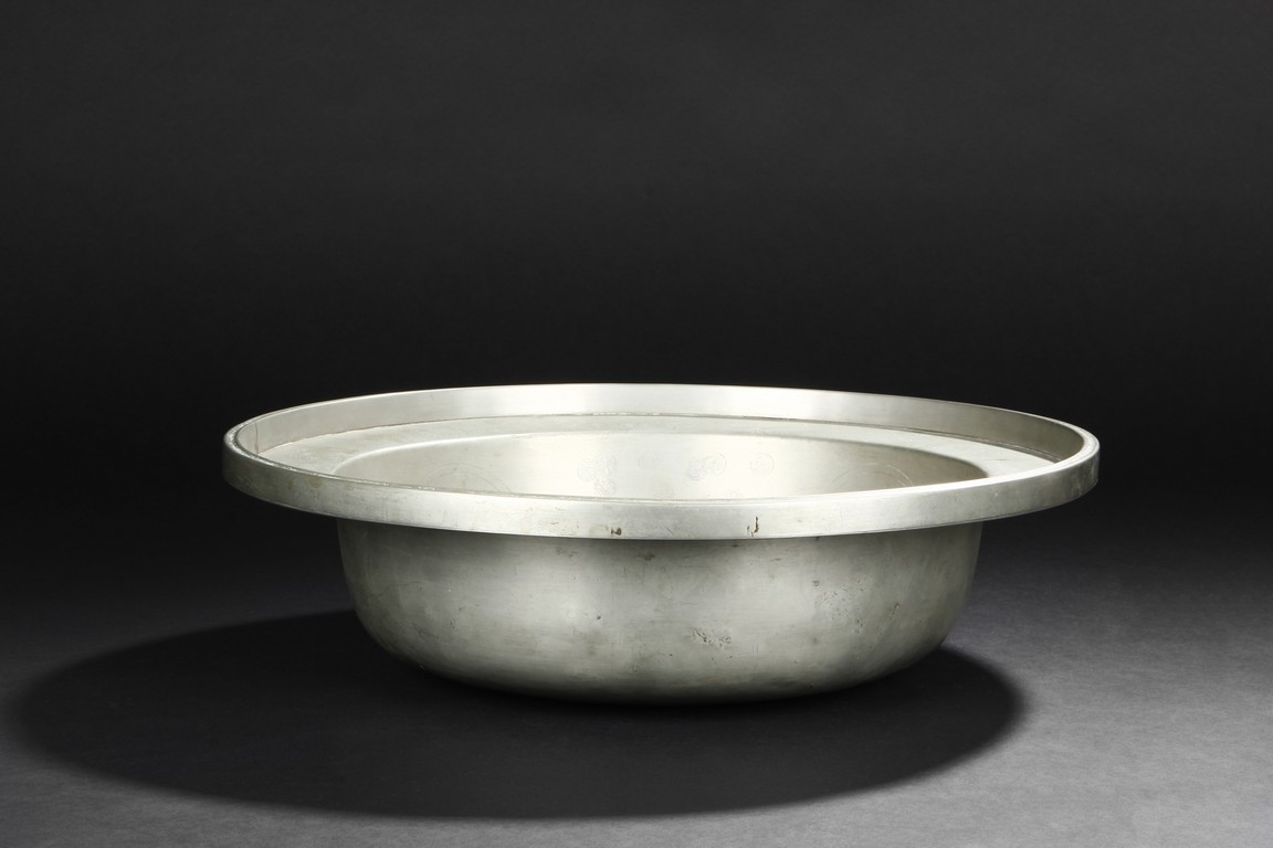 A CHINESE INCISED FIGURES PEWTER BASIN 民國 一品當朝福祿壽錫盆