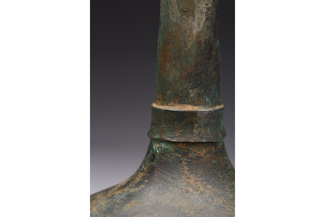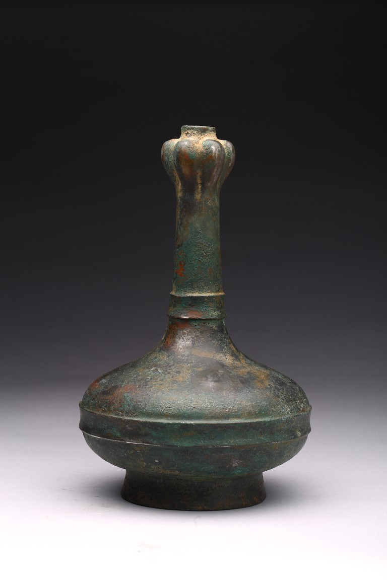削肩,圓腹,圈足,頸部略長。造型雅緻秀美,線條流暢柔和,銅質優良,包漿渾厚,皮殻一流。