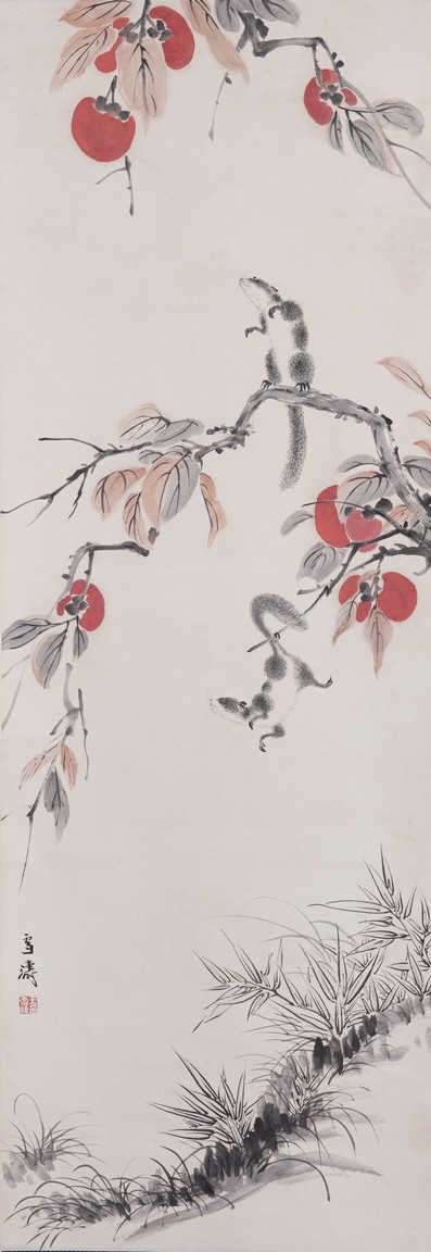 Color and ink on paper. Squirrel. Hanging scroll, signed Xuetao, with one seal mark.