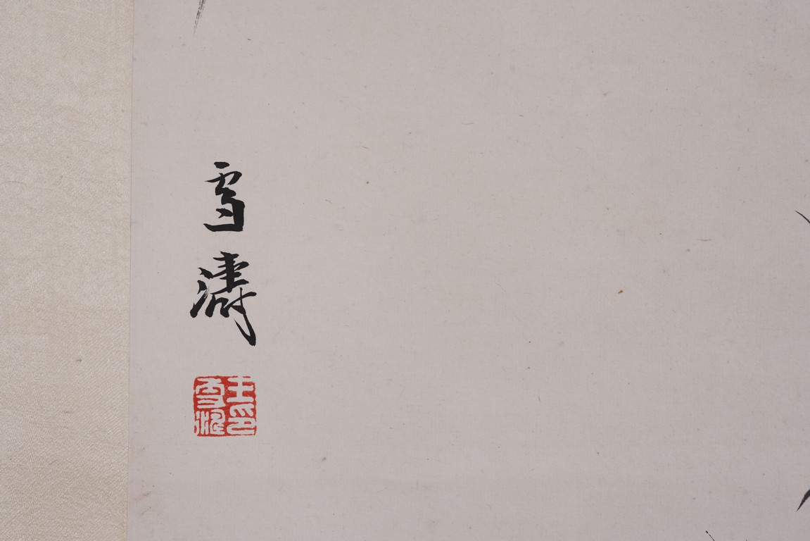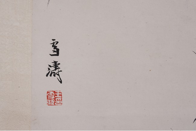 落款:雪濤鈐印:王雪濤印王雪濤(原名庭鈞,字曉封,號遲園,中國現代著名小寫意花鳥畫家。歷任北京畫院院長、中國美術家協會理事、美協北京分會副主席、北京市第七屆人大代表、北京市第五屆政協常委。