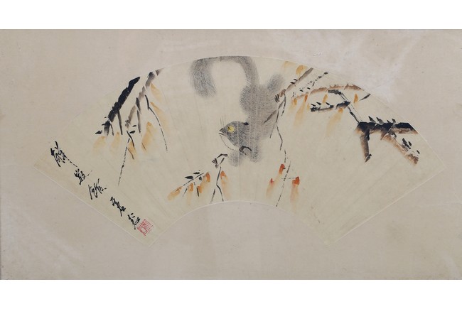 A COLOR AND INK ON PAPER 'SQUIRREL' PAINTING 虛谷 松鼠 設色紙本 扇面畫