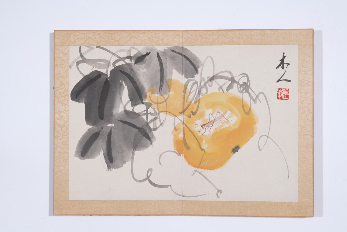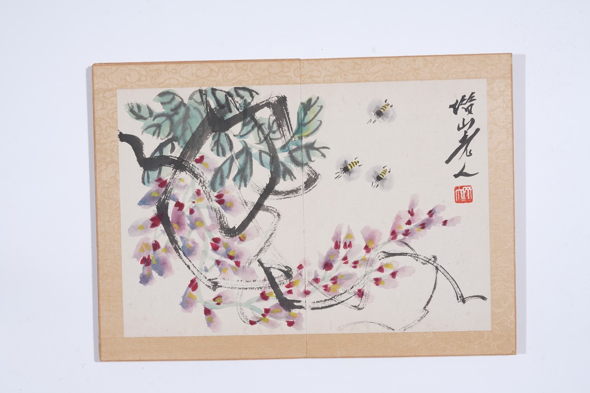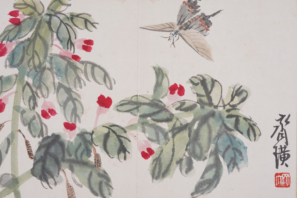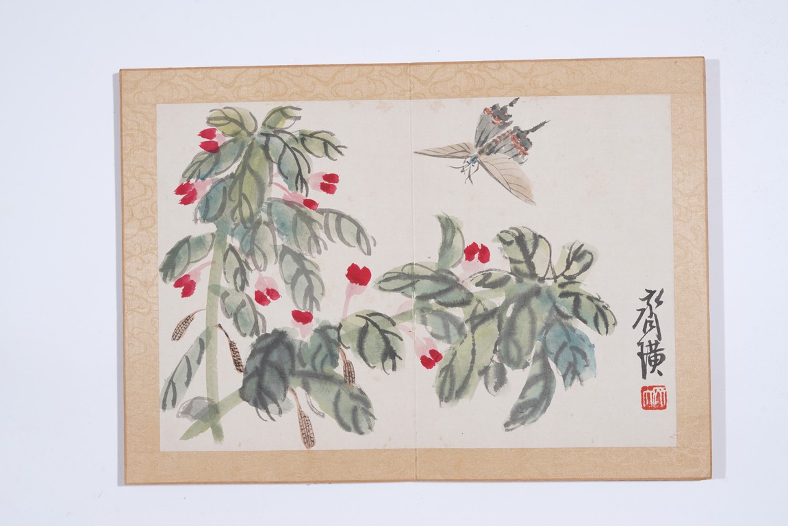 Color and ink on paper. Flowers and animals. 10 leaf album. Inscribed and signed with seal marks. Attributed to Qi Baishi.