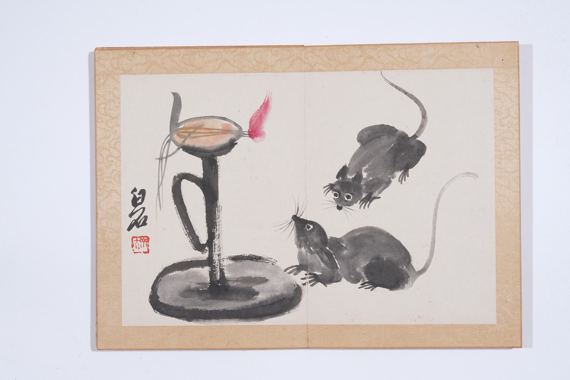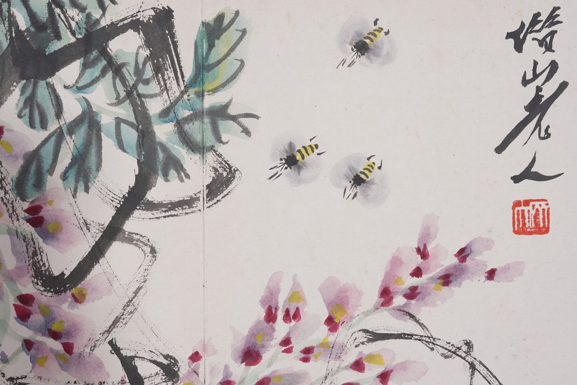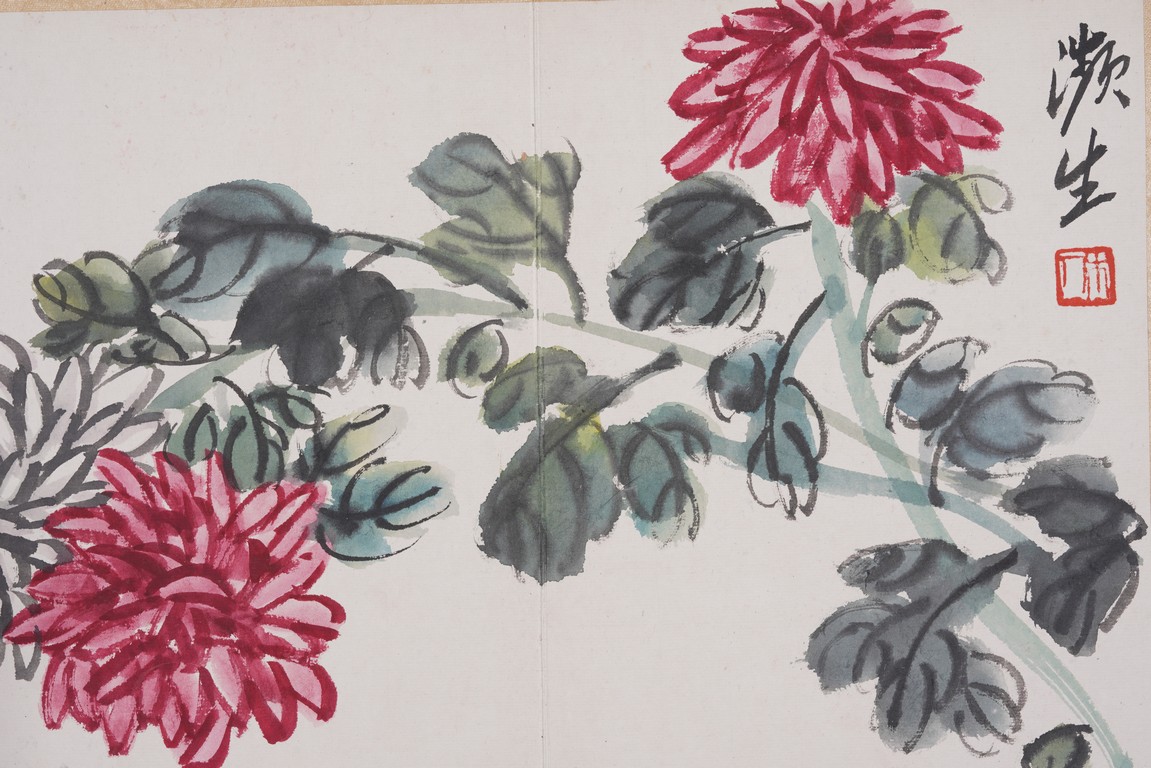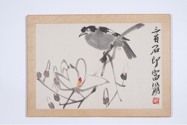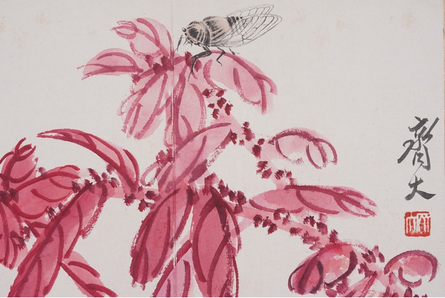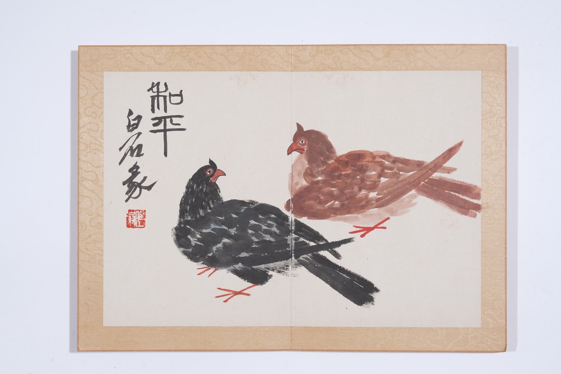Color and ink on paper. Flowers and animals. 10 leaf album. Inscribed and signed with seal marks. Attributed to Qi Baishi.