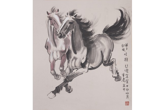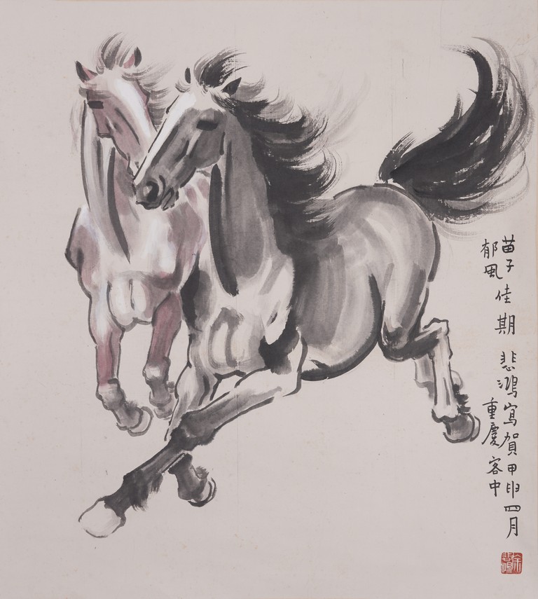Color and ink on paper. Horses. Inscribed and signed Beihong, with one seal mark of the artist.