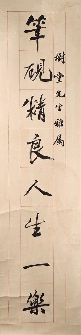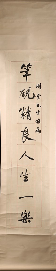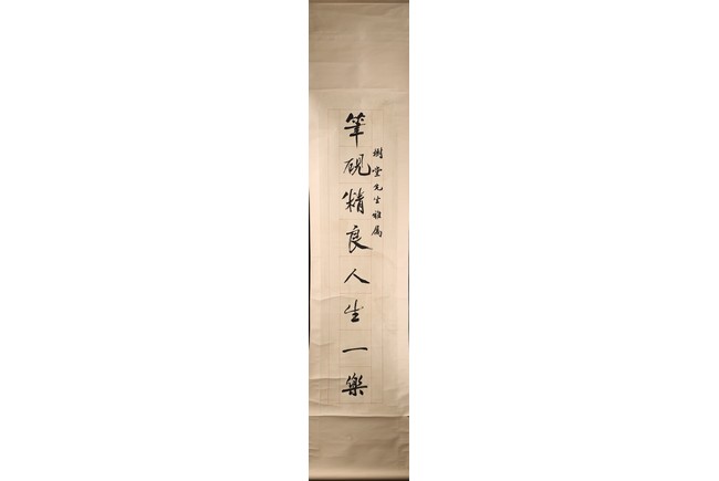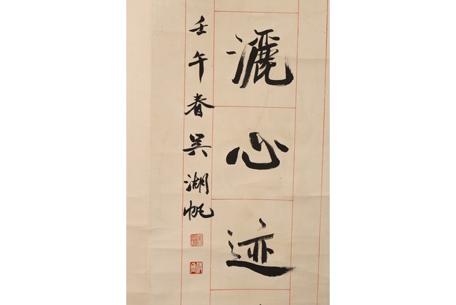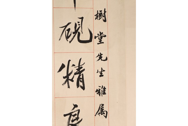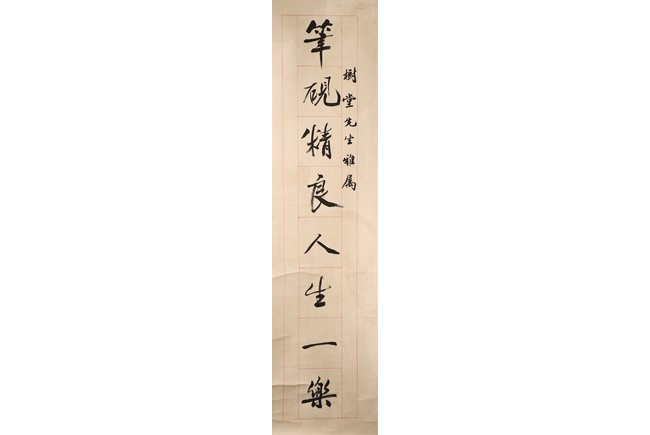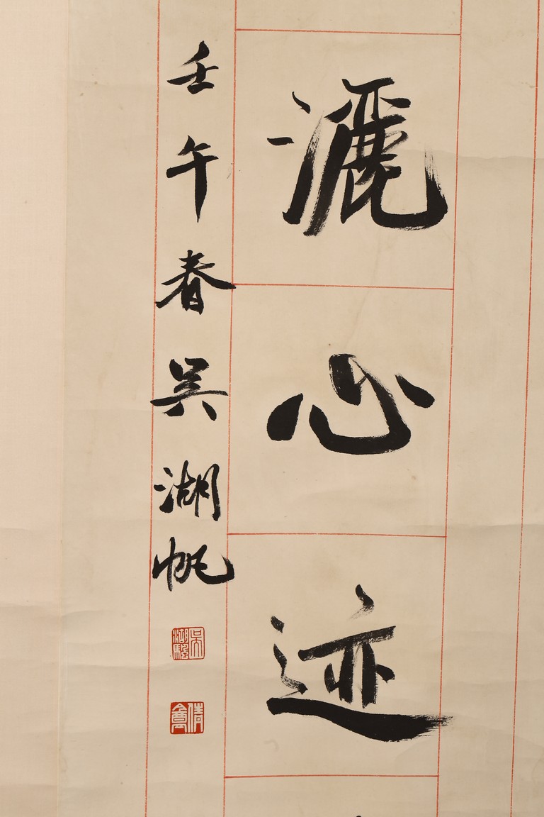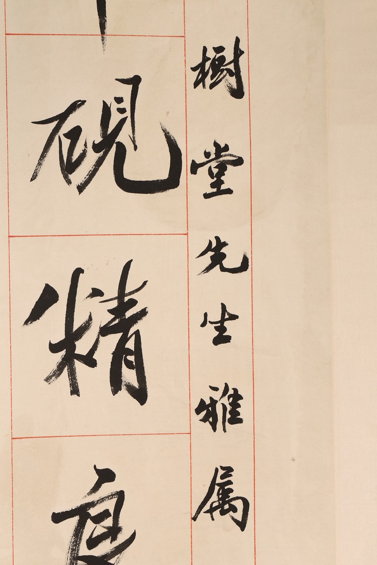 Ink on paper. Calligraphy couplet. Hanging scroll. Inscribed and signed Wu Hufan, with two seal marks of the artist.