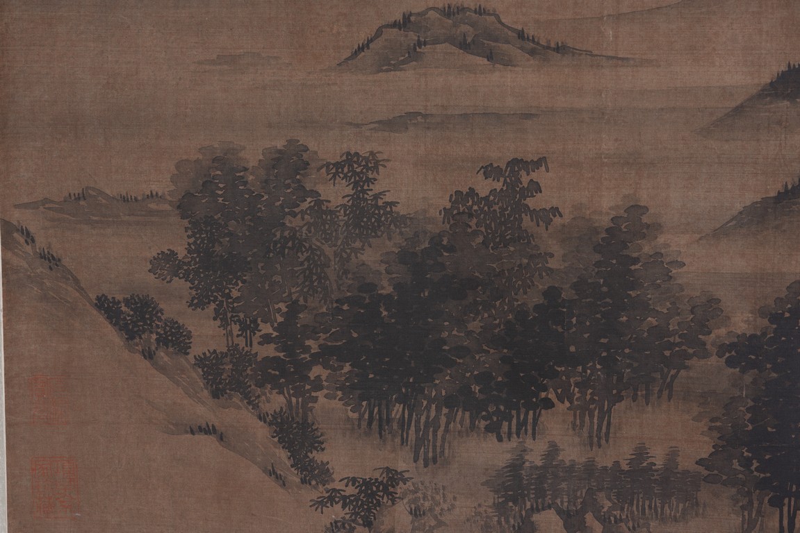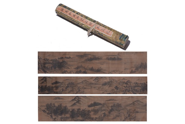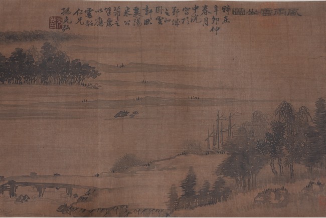 Ink on silk. Clouds and mountains. Handscroll. Inscribed and signed Sun Kehong, with three seal marks of the artist.