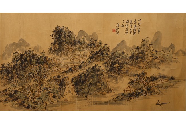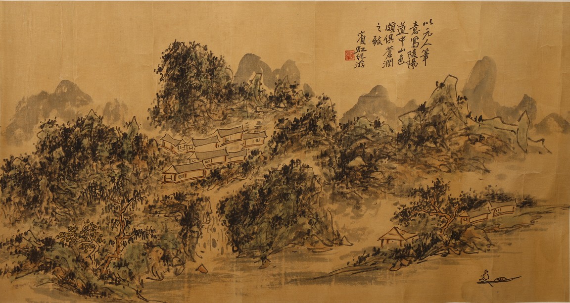 Color and ink on paper. Landscape. Inscribed and signed Binhong, with one seal mark.