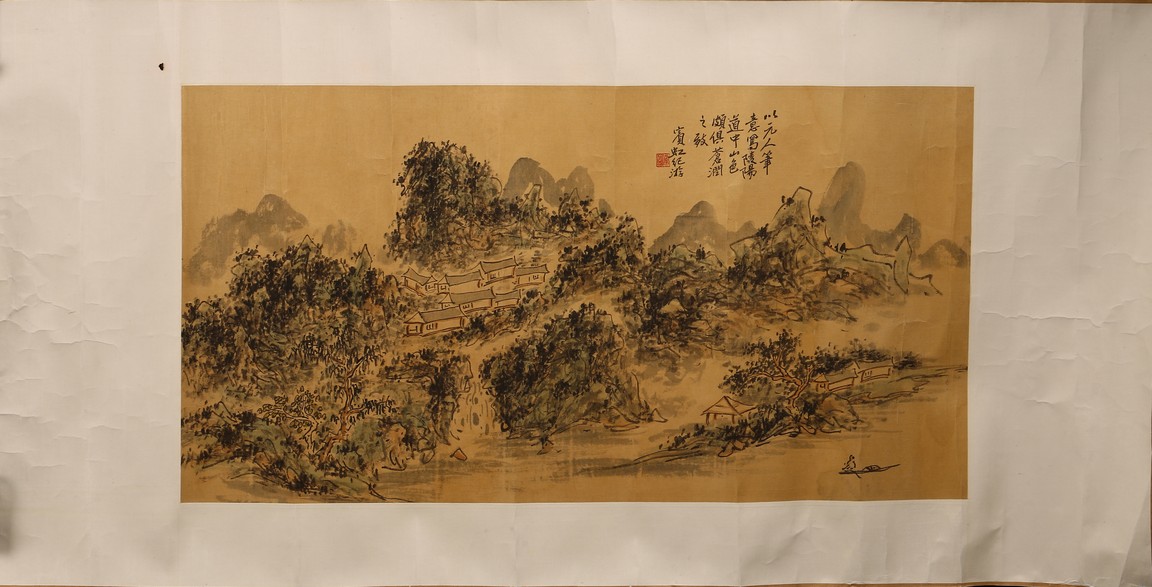 A COLOR AND INK ON PAPER 'LANDSCAPE' PAINTING 黃賓虹 元人筆意 設色紙本