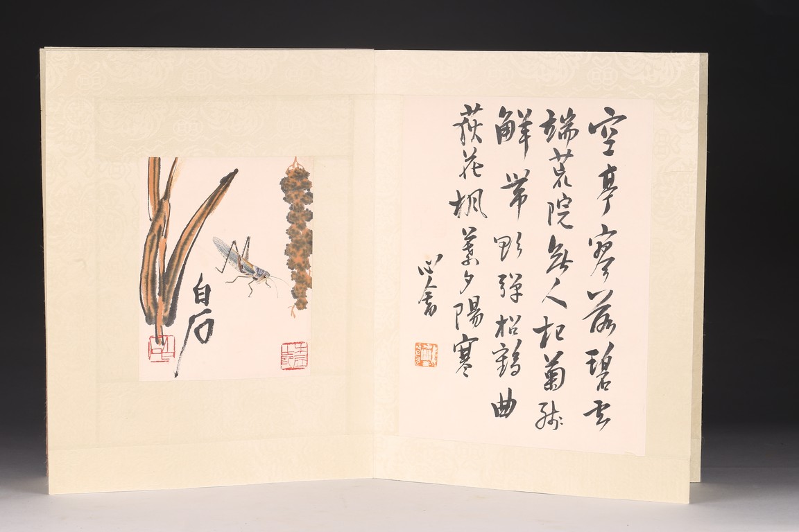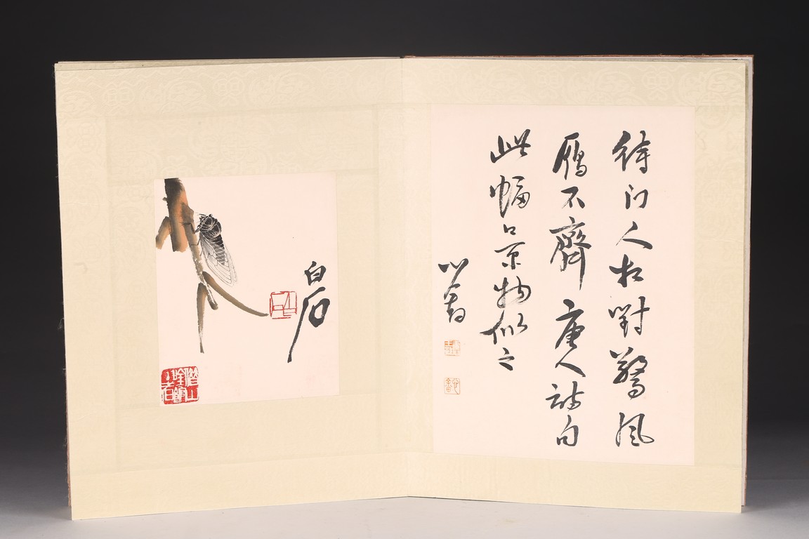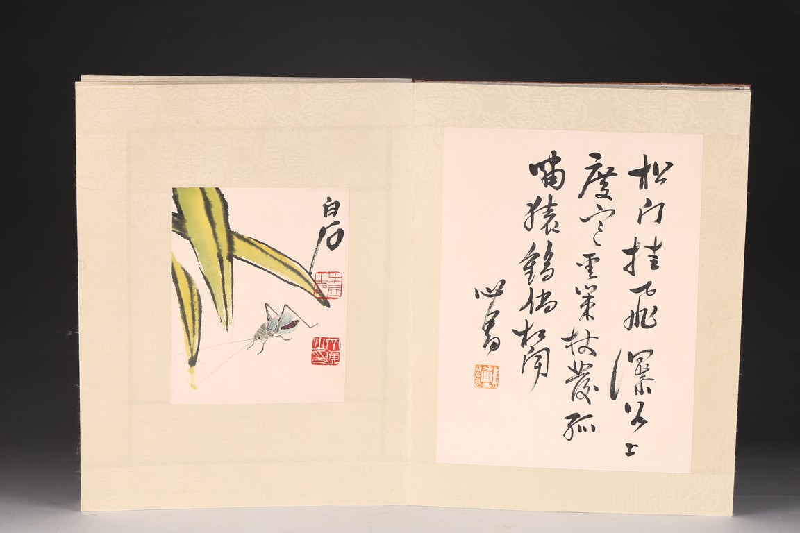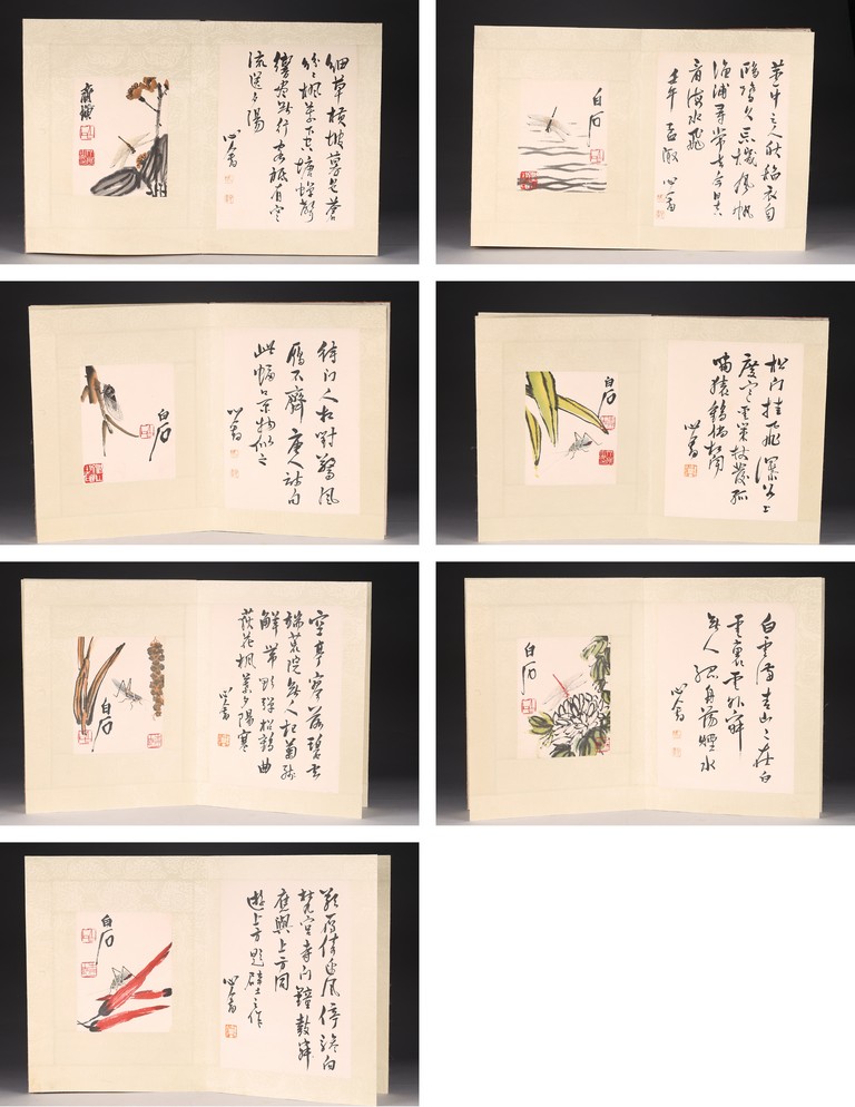 Color and ink on paper. Insects. Album. Signed Baishi, with calligraphy inscribed and signed Xinyu, with seal marks of the artist.
