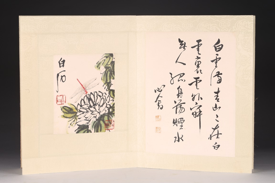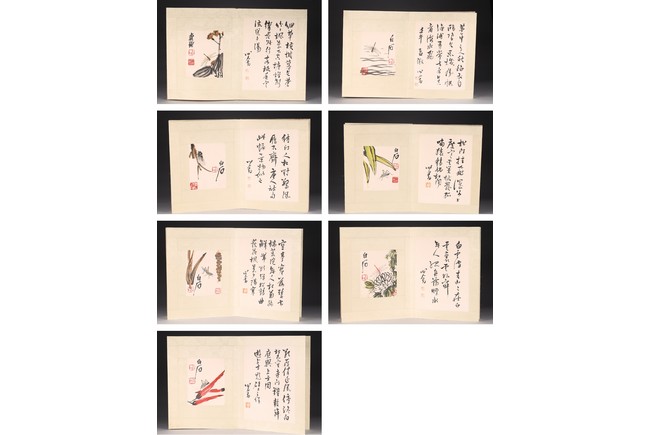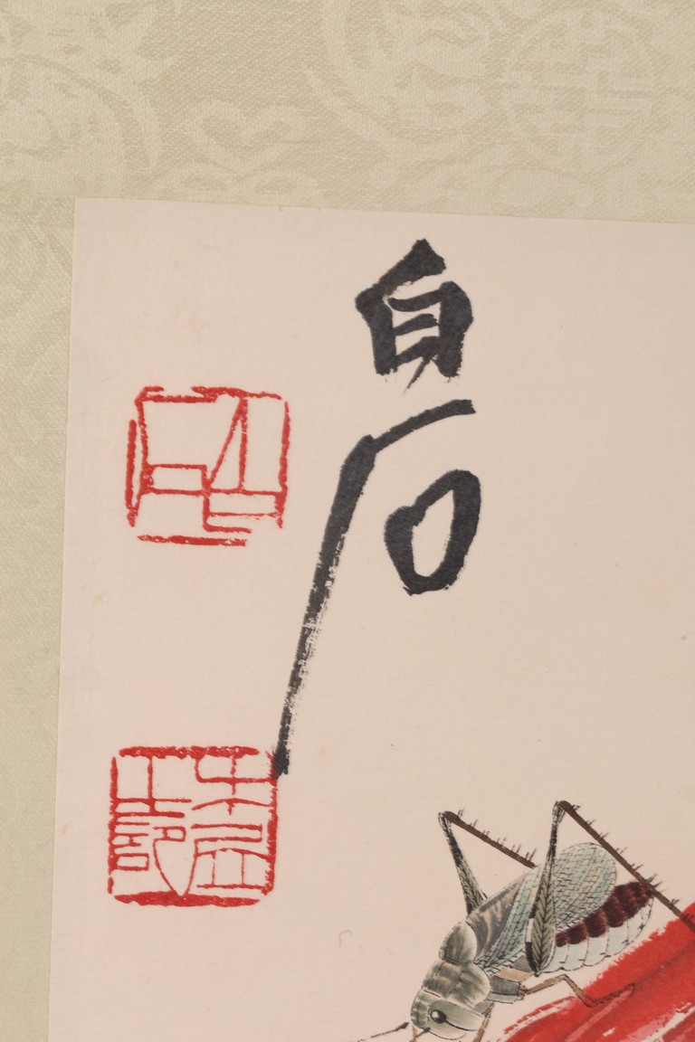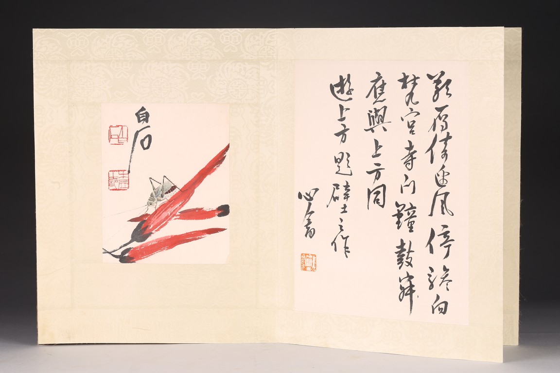 Color and ink on paper. Insects. Album. Signed Baishi, with calligraphy inscribed and signed Xinyu, with seal marks of the artist.