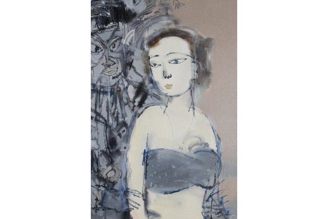 Chinese. Oil on canvas. Opera figure and a lady. Framed. Signed and dated. Tian Xiaochi (B.1966)
