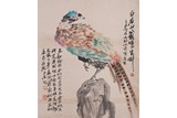 A COLOR AND INK 'BIRD' PAINTING IN MANNER OF DAQIAN 張大千款 花鳥 設色紙本 鏡心 |