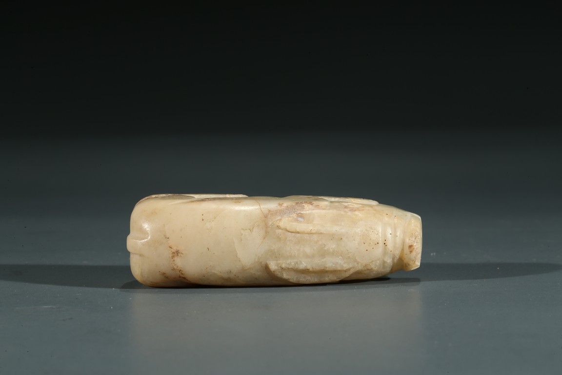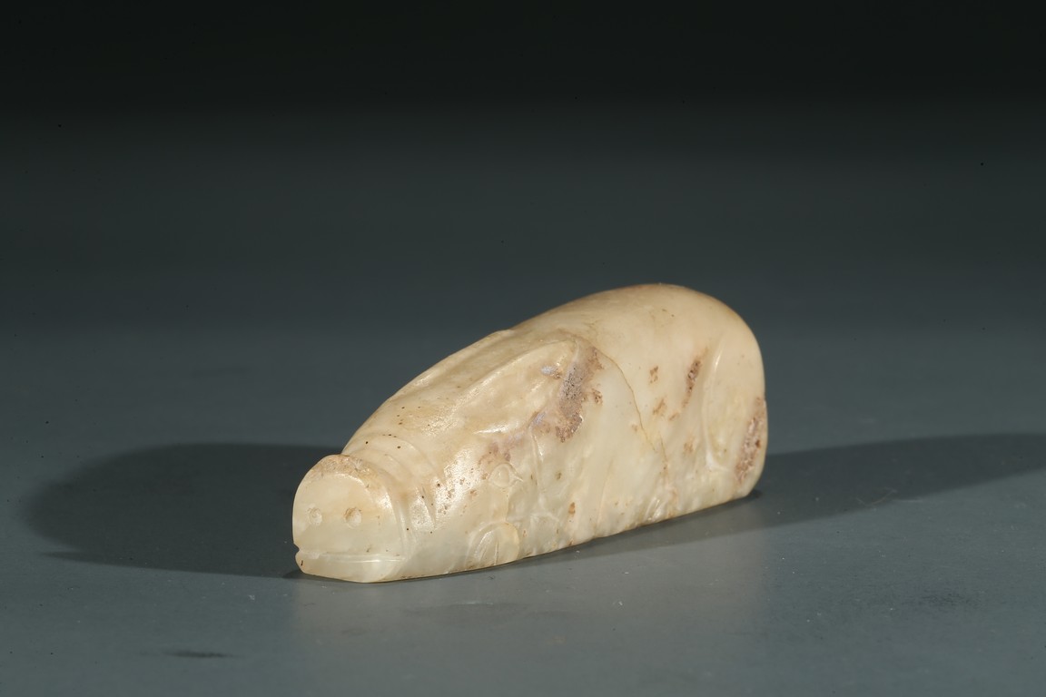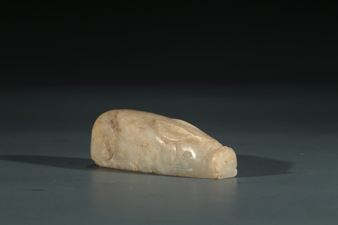 A JADE CARVED RECUMBENT PIG 豬形玉握