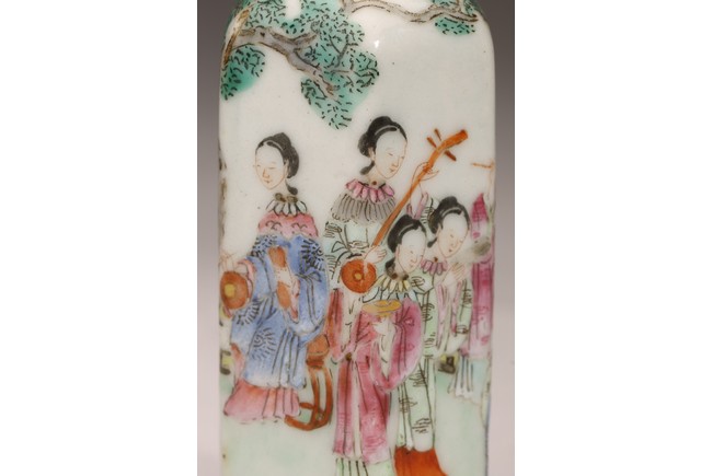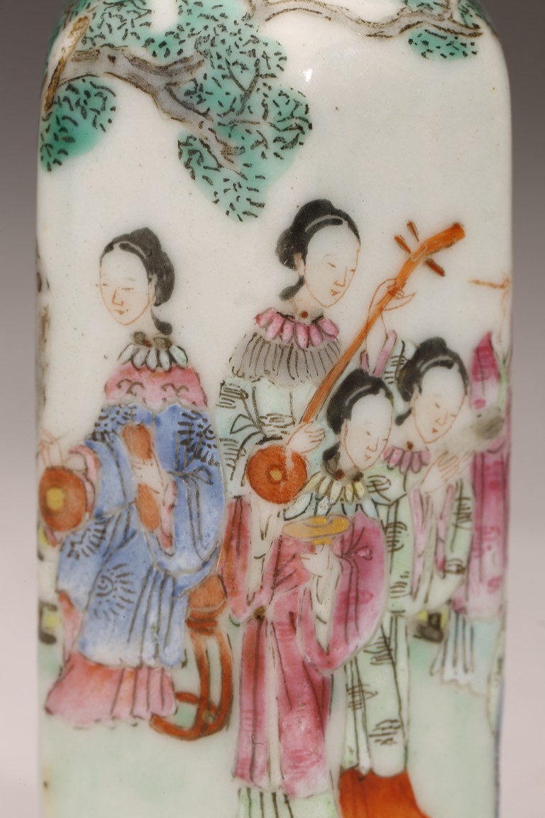 Qing Dynasty period. Finely painted to the exterior with ladies playing various instruments in a garden, the base inscribed with Daoguang mark.