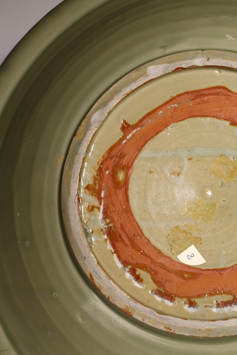 敞口,弧形腹,圈足,盘心刻纹饰,纹饰排列规矩,清晰自然,底足漏胎,为红褐色。 來源:洛杉磯重要私人收藏 Provenance: Important Private collection, Los Angeles