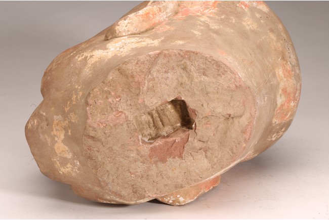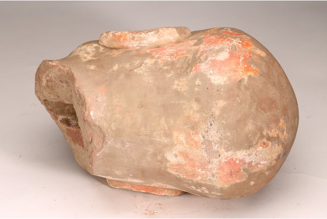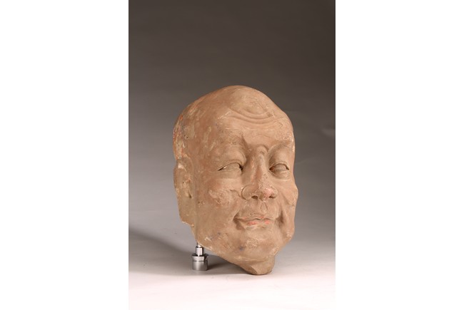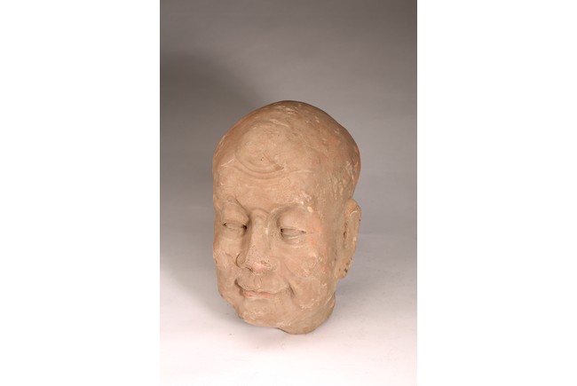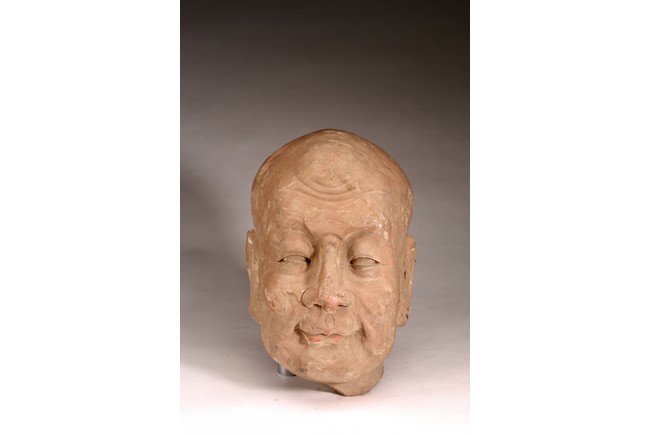 迦葉是佛陀十大弟子之一,其出生於婆羅門種姓家富豪庭中,從小受到良好的教育。入佛祖門下,堅進苦,後證得羅漢果。在靈鷲山法會上,迦葉領會對佛祖微妙法門,對 拈花而微笑,得佛祖“衣缽真傳”,被中國禪宗列爲西天第一代祖師。此迦葉像器身部分缺失,只留有頭部,爲年老比丘形貌,額頭皺紋清晰,面容慈祥, 眉如彎月,雙目低垂,寬鼻小嘴,顴骨高凸。局部殘留紅彩,體現了年代久遠而帶來的 滄桑感。