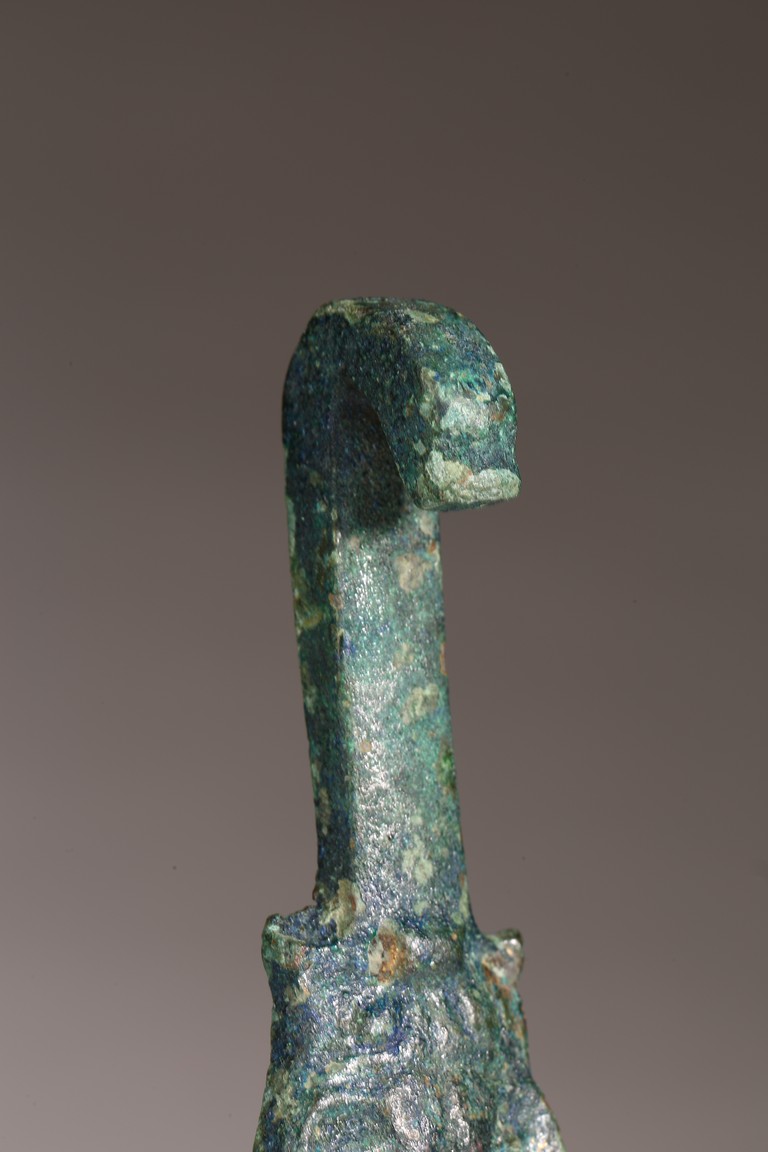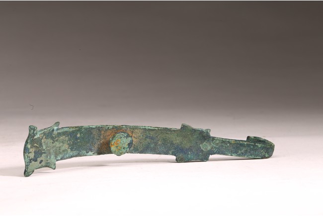 帶鉤是中國古代服飾的重要配件,兼具實用性和美觀性。此帶鉤體長而纖細,銅質優良, 帶有綠銹。 來源: 洛杉磯資深私人藏家舊藏 Provenance: From an important Los Angeles Private collection