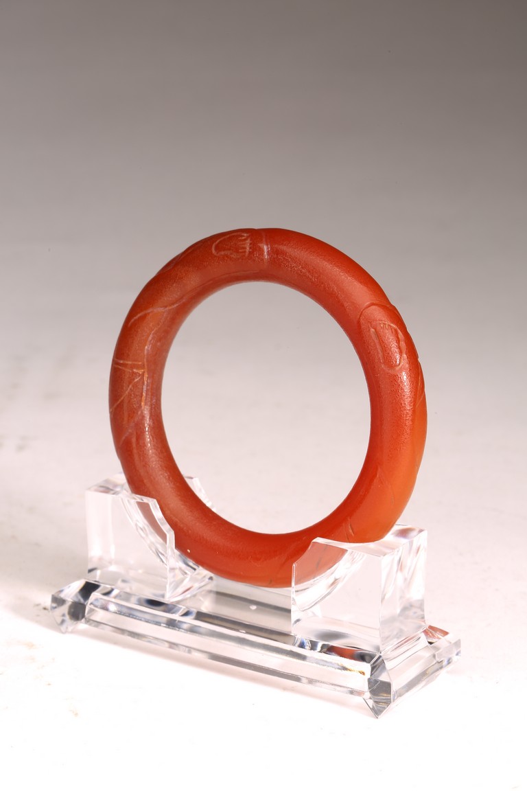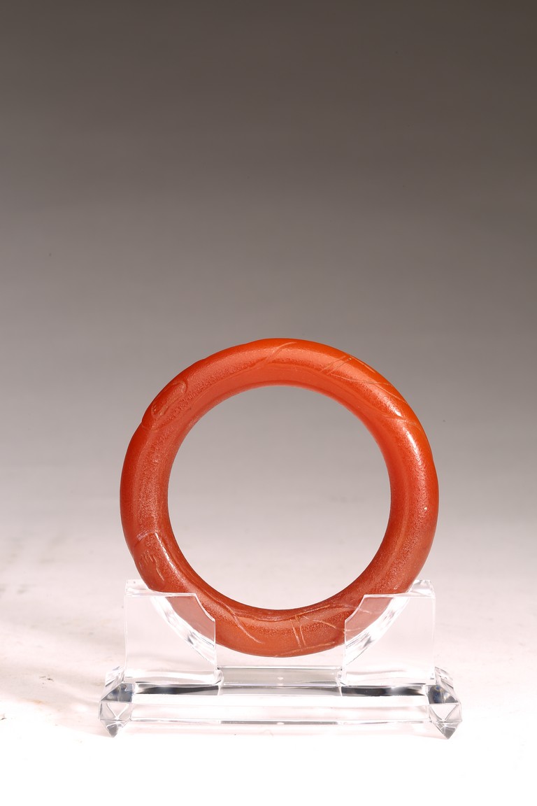 A CHINESE AGATE CARVED BANGLE 清 玛瑙手鐲