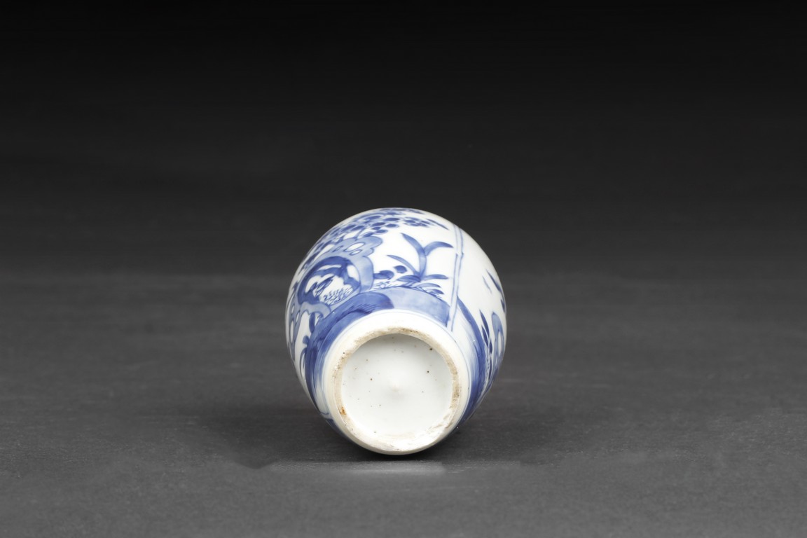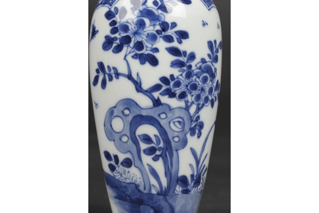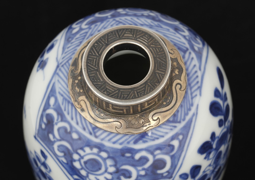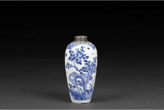 Of tapering cylindrical form, the exterior depicts fully blossomed flowers growing from the garden, bees and birds flying on top, the rim covered by patterned silver cap. Qing Dynasty period