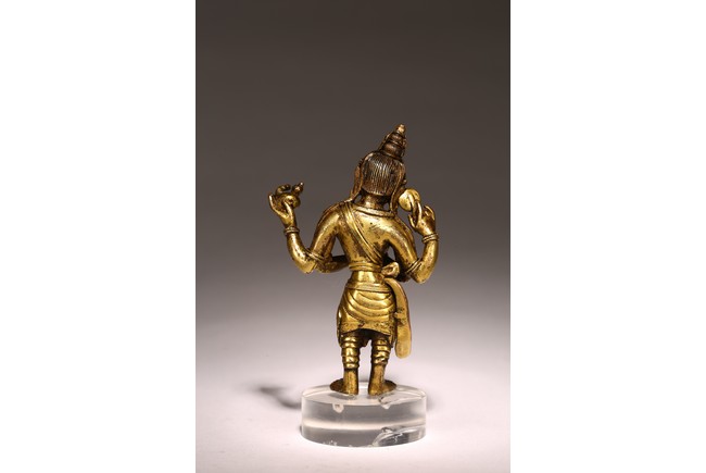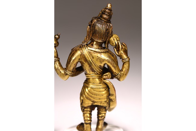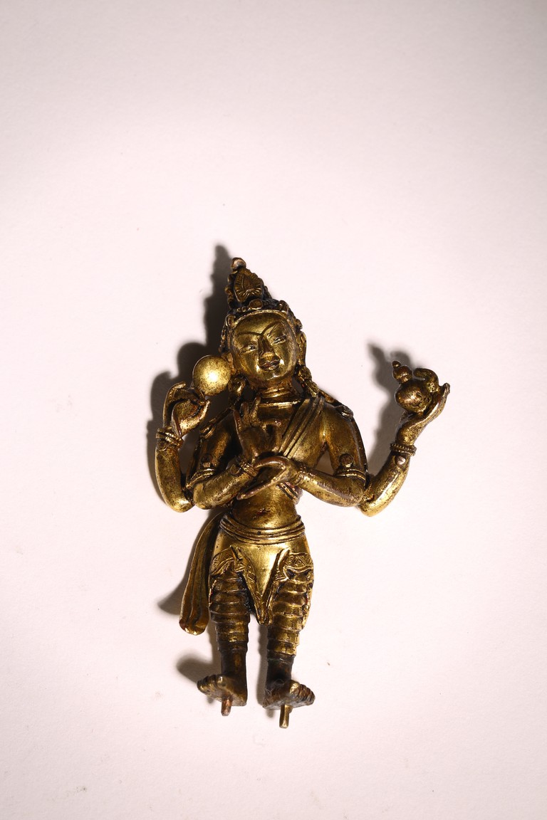 Qing Dynasty period. standing clad in a billowing dhoti and high crown with body jewellery and hands holding attributes.