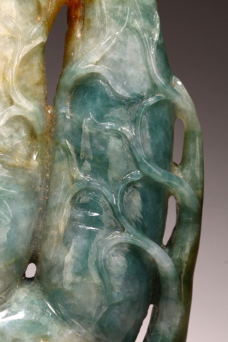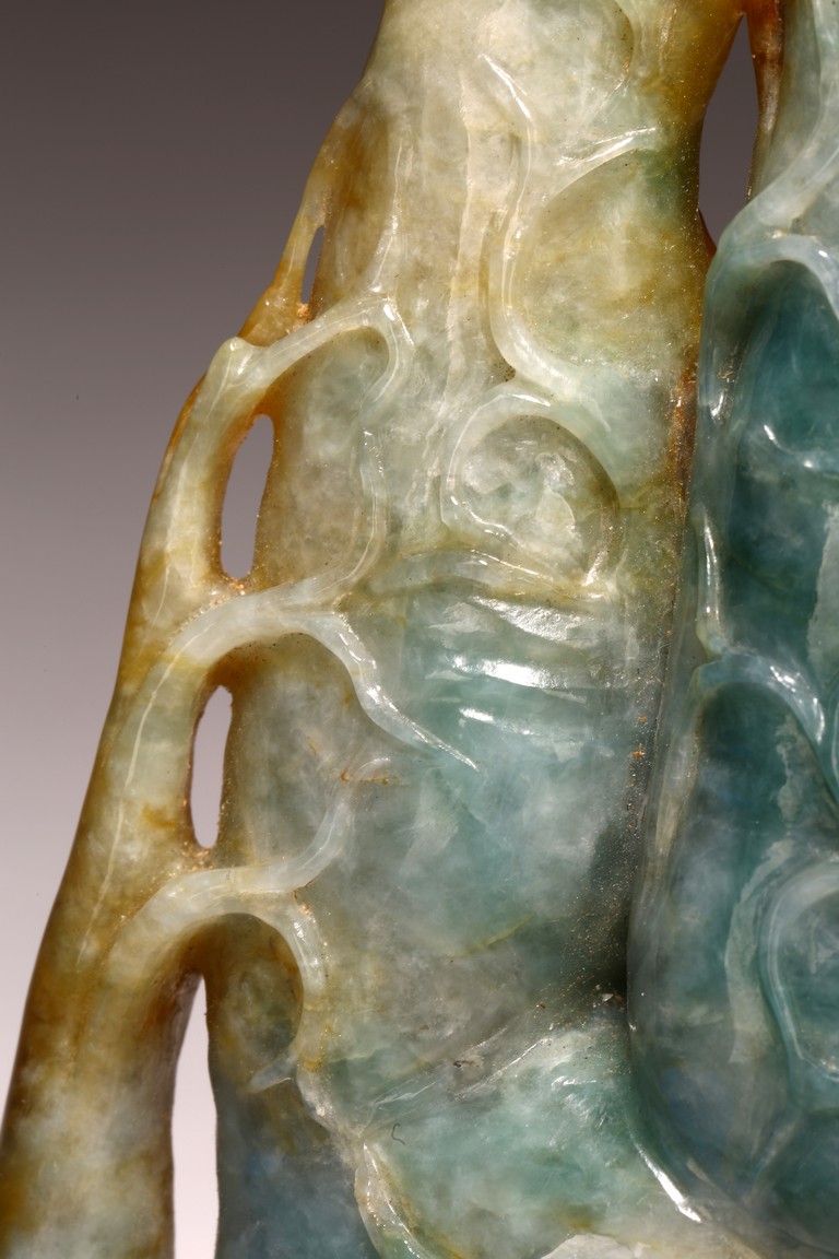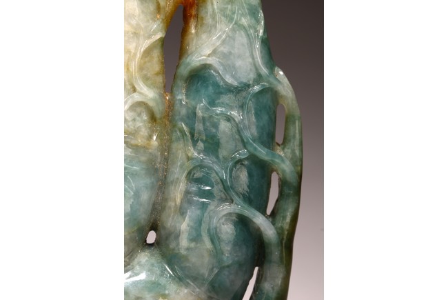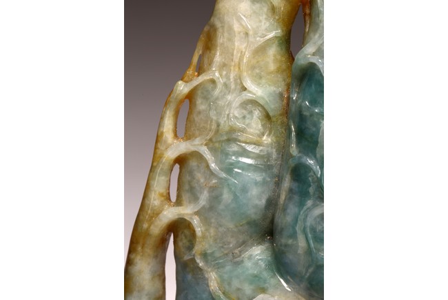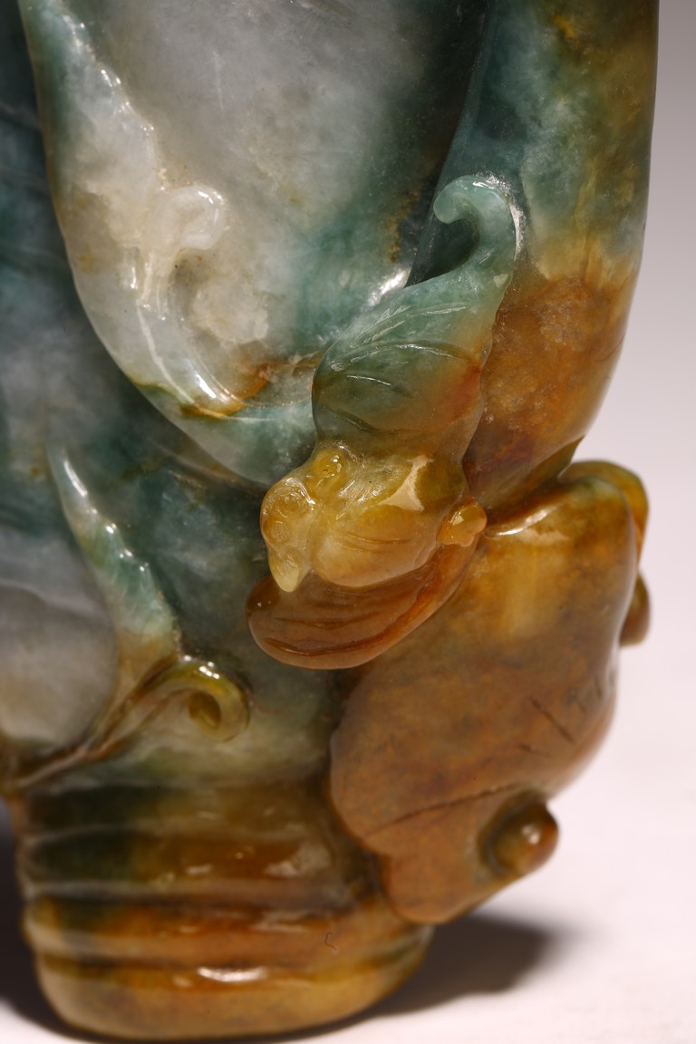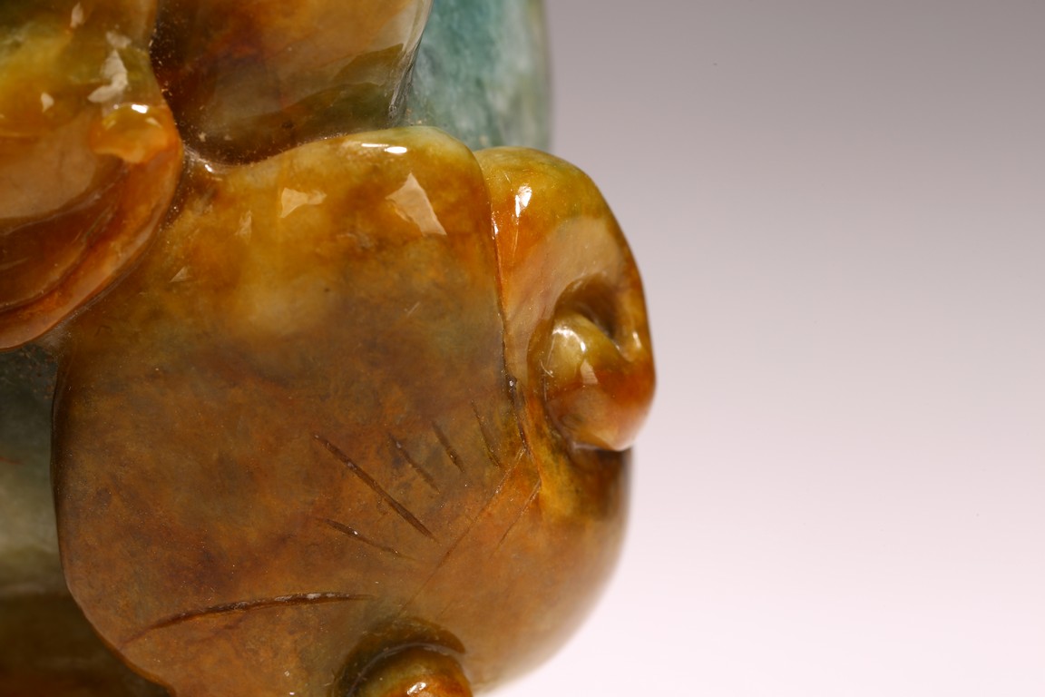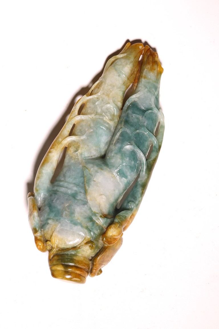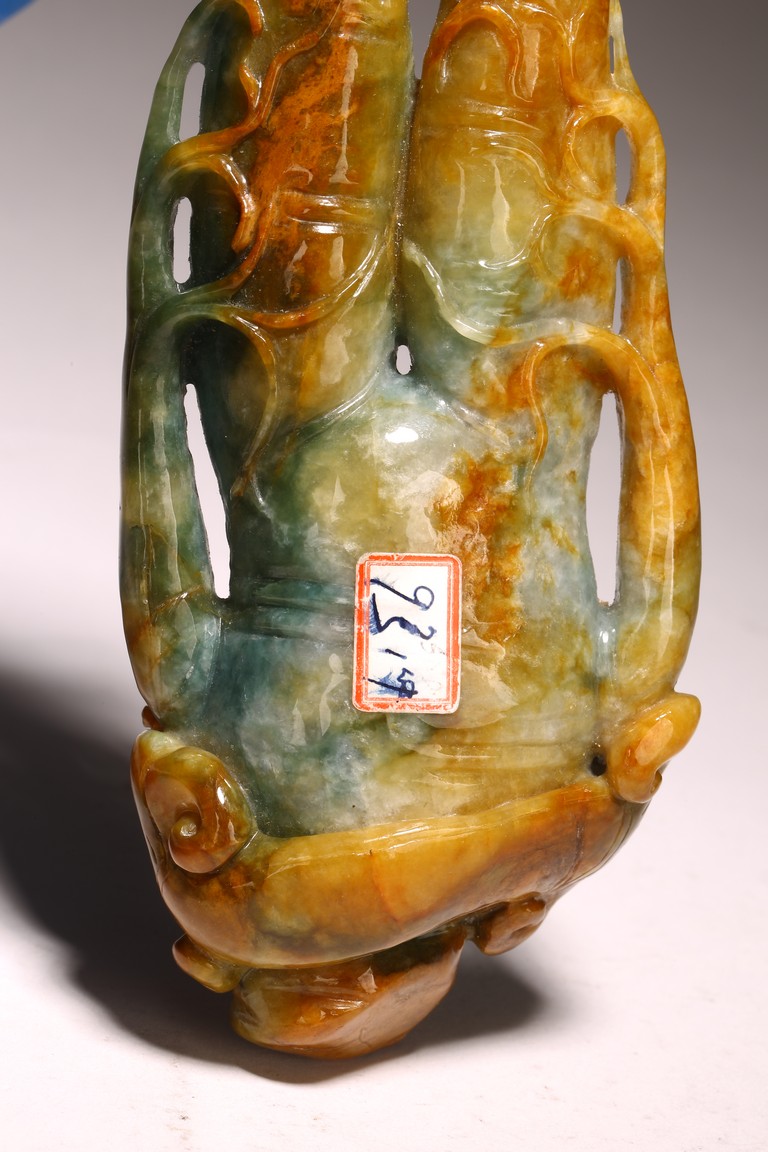翡翠制成,大面积带有黄翡巧色,质地一流。圆雕佛手形状,寓意吉祥,清代常以佛手纹 饰表示长寿,取其吉祥与“佛佑”之意。
