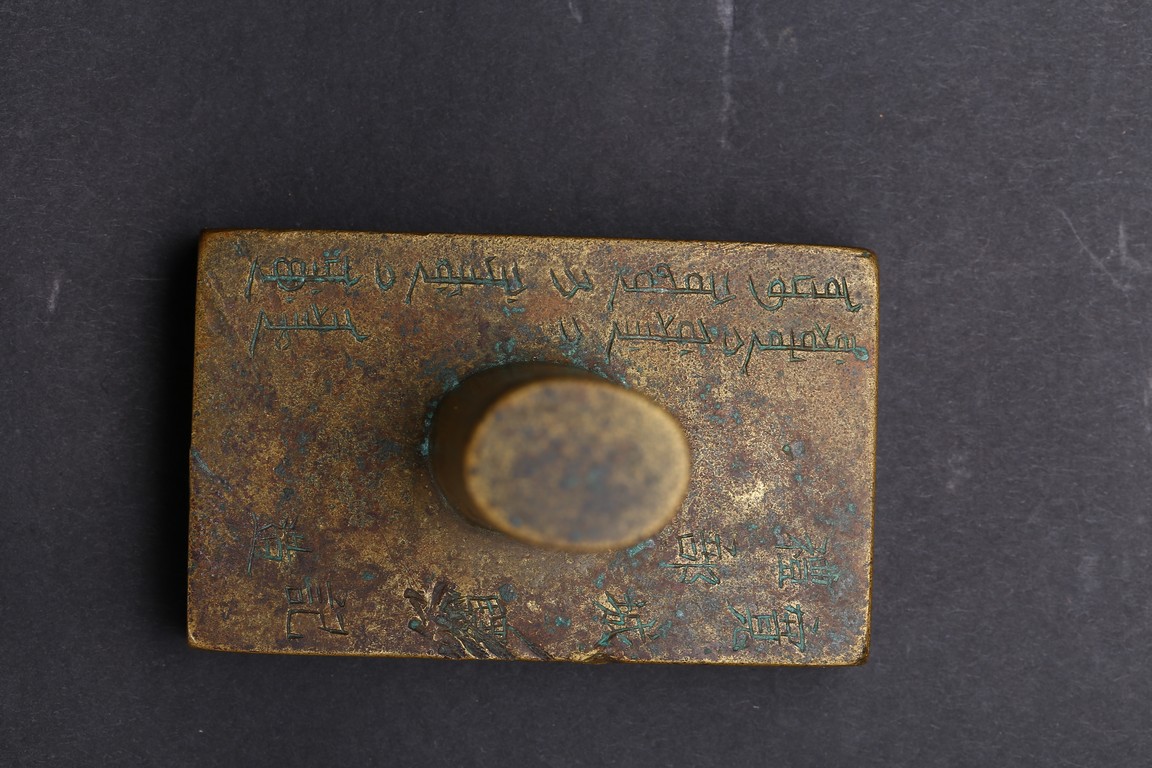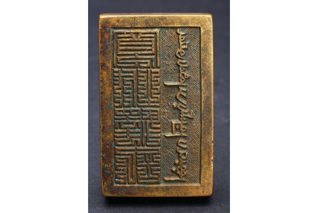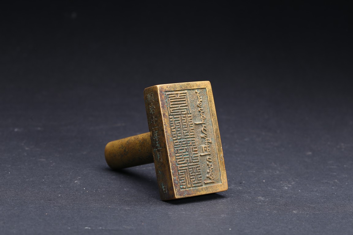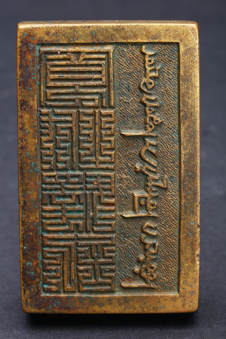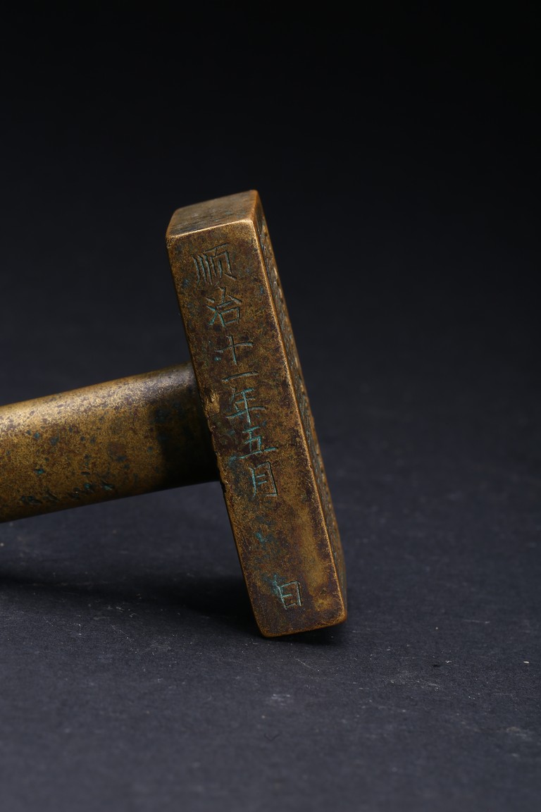 Of rectangular section and inscribed with Manchurian and chinese inscriptions. Mark and period of Shunzhi.