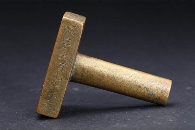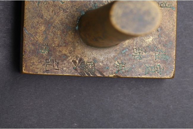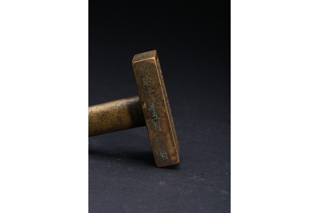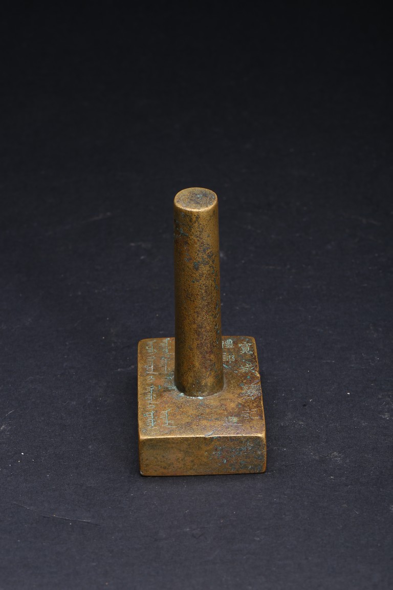 圓柱形印紐,長方形印面,印台刻禮部造”。側面刻“順字六百七十八“。底部刻滿文, 篆書印文。
