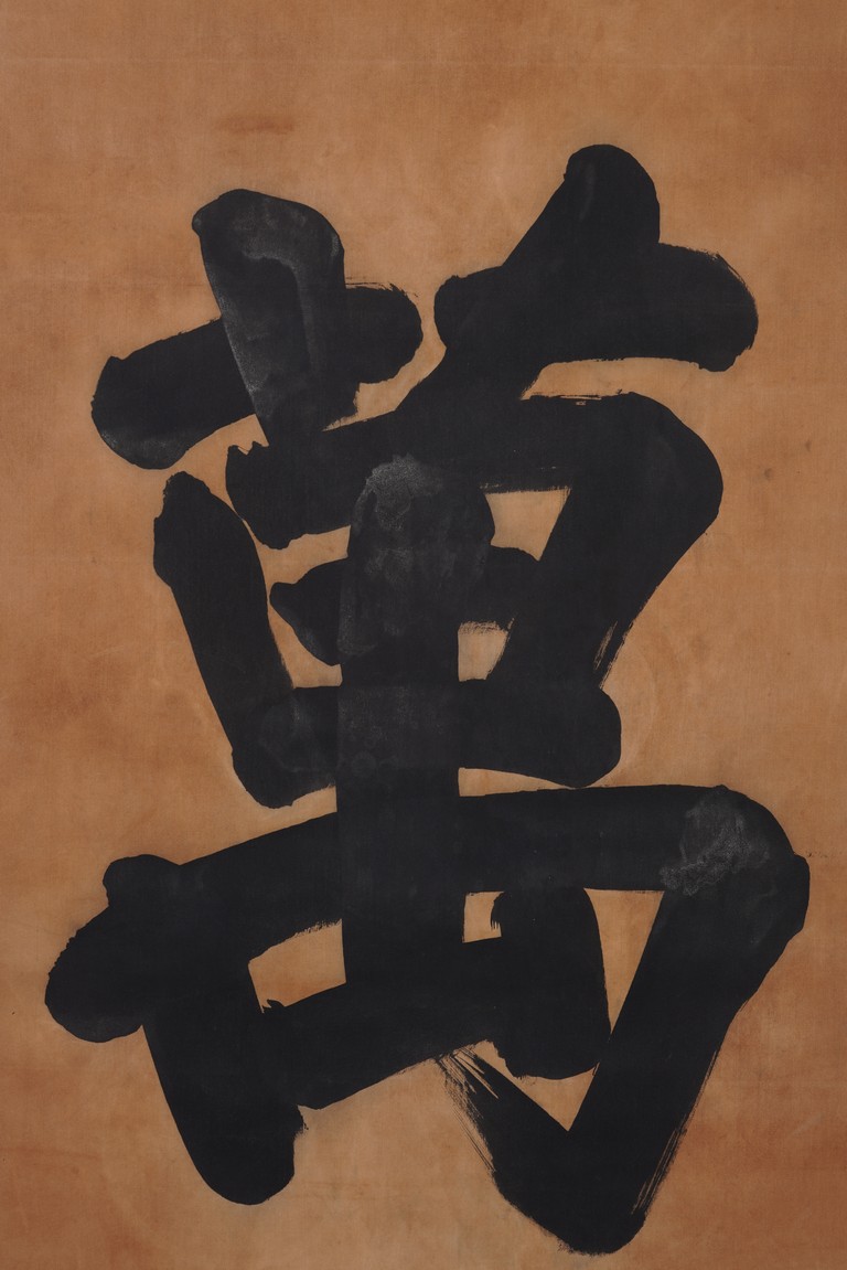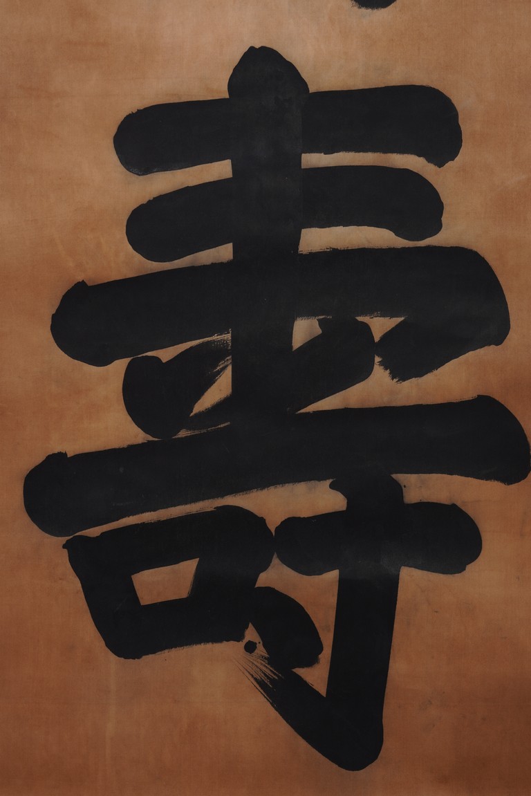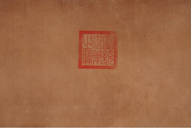 Ink on Satin. Hanging scroll. Regular script Wan Shou, with one seal mark attributed to Xuan Tong.