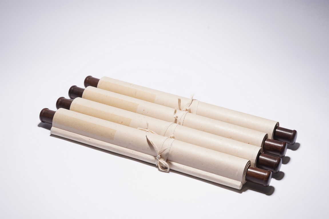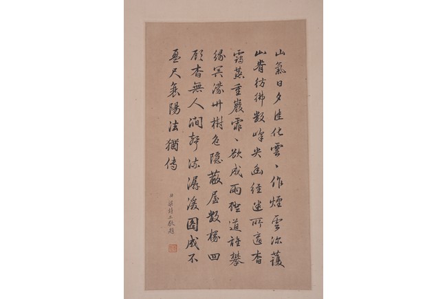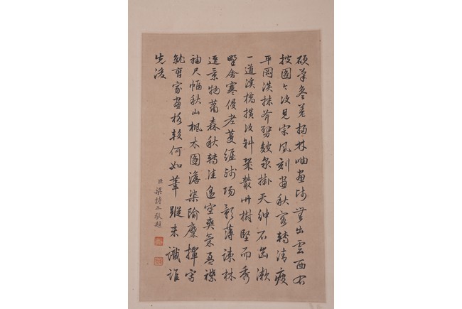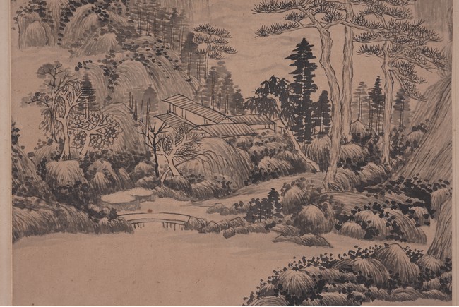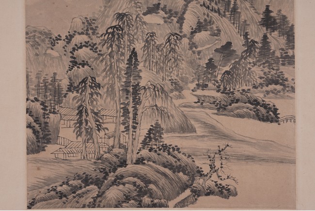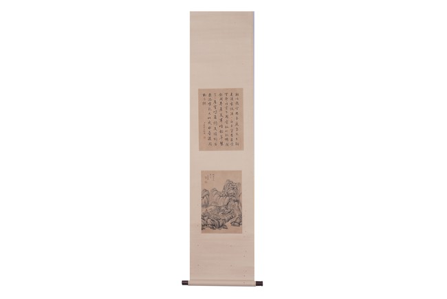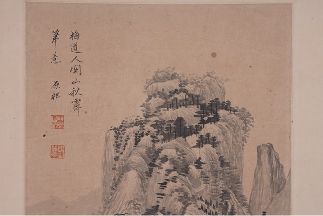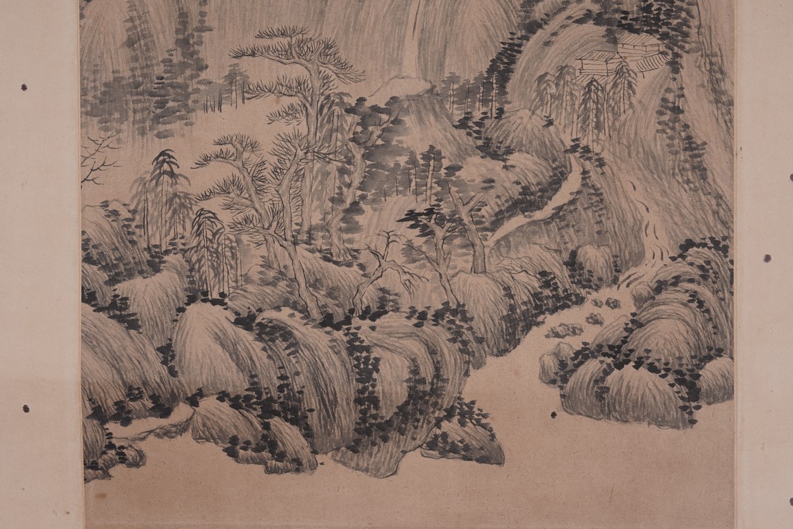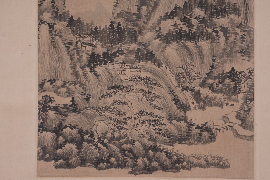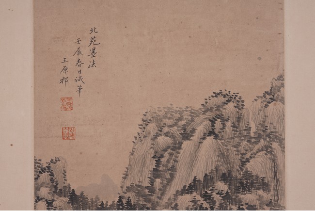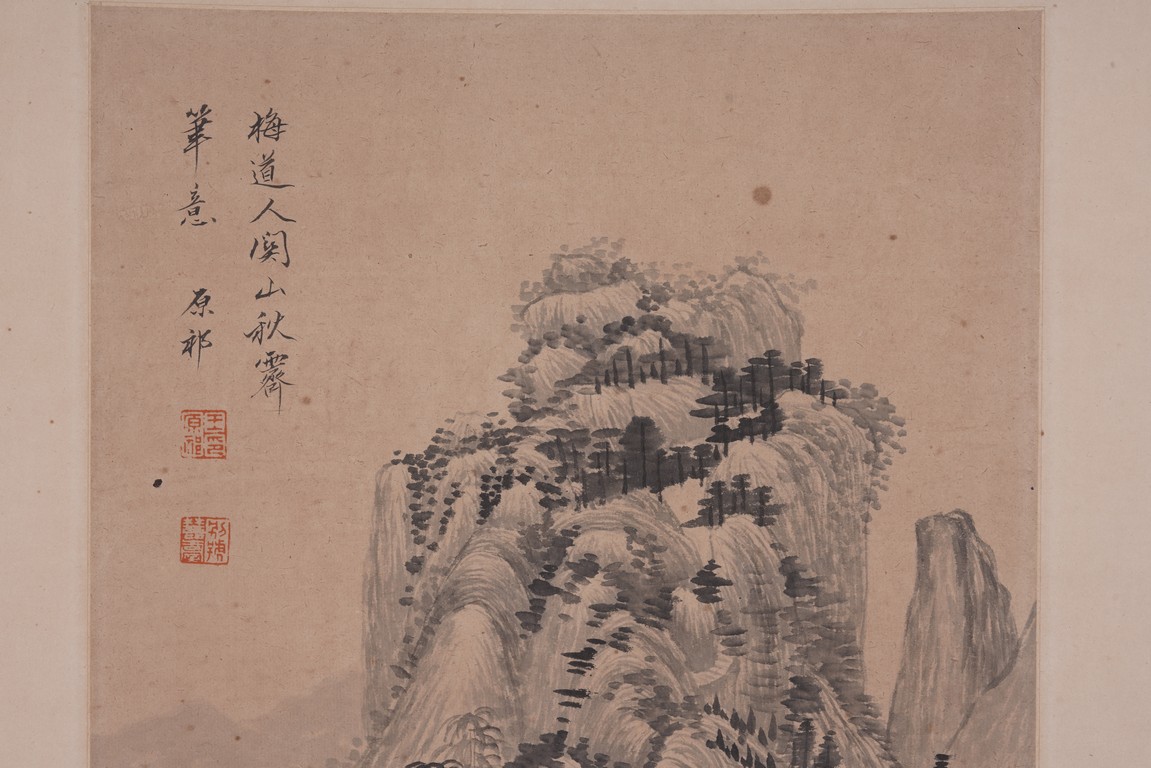Ink on paper. Set of four landscape paintings. Hanging scroll. Inscribed and signed Wang Yuanqi with seal marks, with calligraphies signed Liang Shizheng with seal marks.
