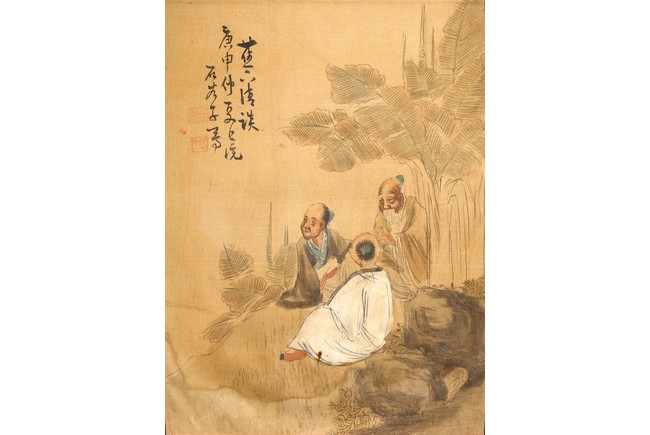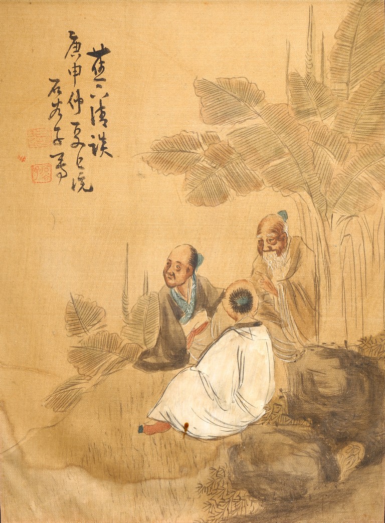Qing Dynasty period. Figures. Mounted on Paper, inscribed and signed, two seal marks.