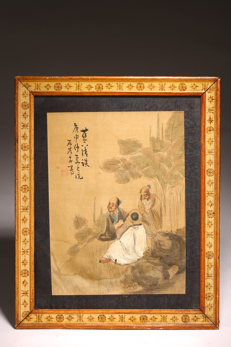 A CHINESE COLOR AND INK ON SILK PAINTING 清 絹本人物小品畫