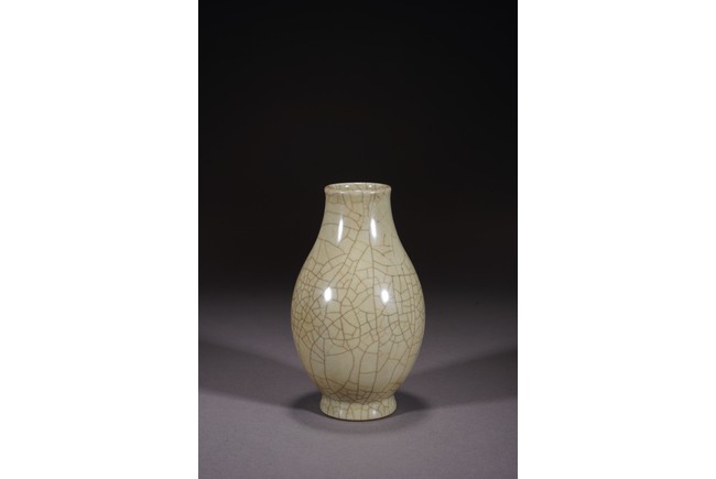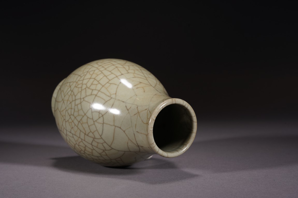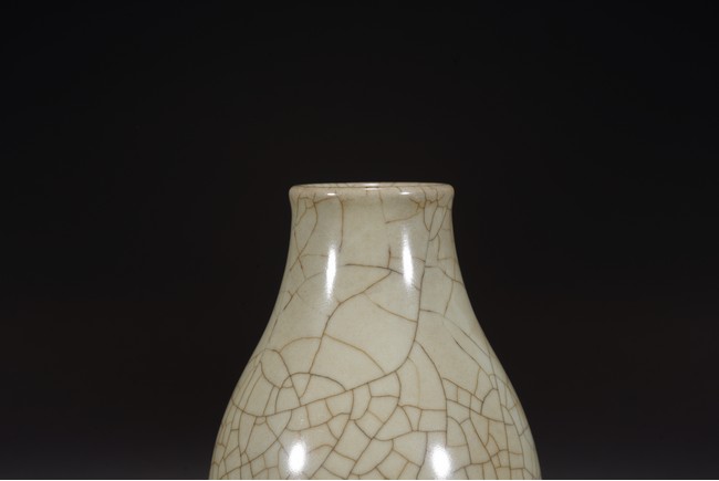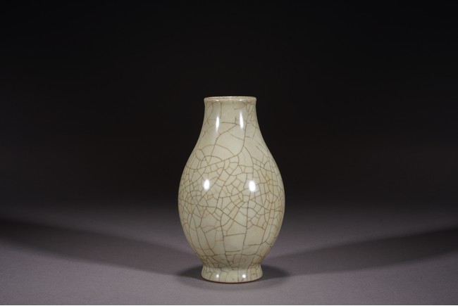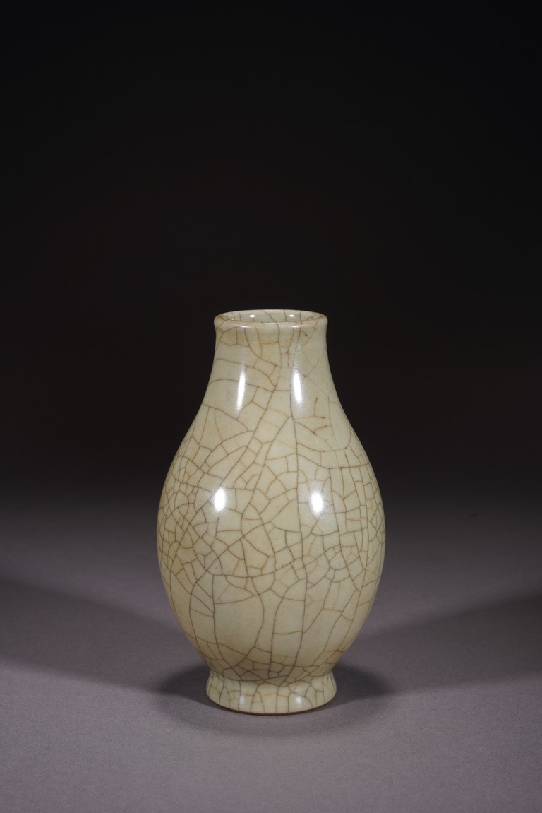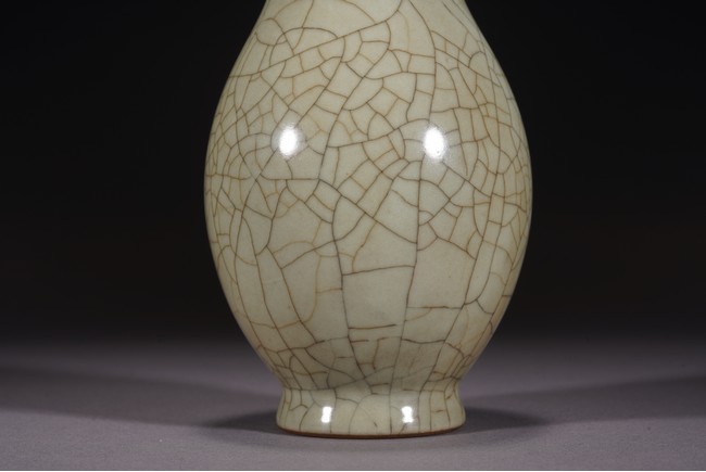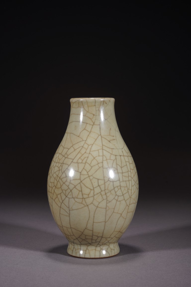 Of pear shape, overall suffused with soft greyish glaze suffused with a matrix of crackles, base bears reign mark.