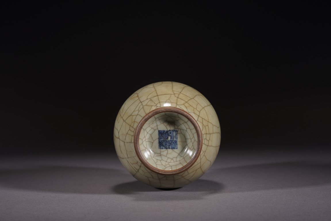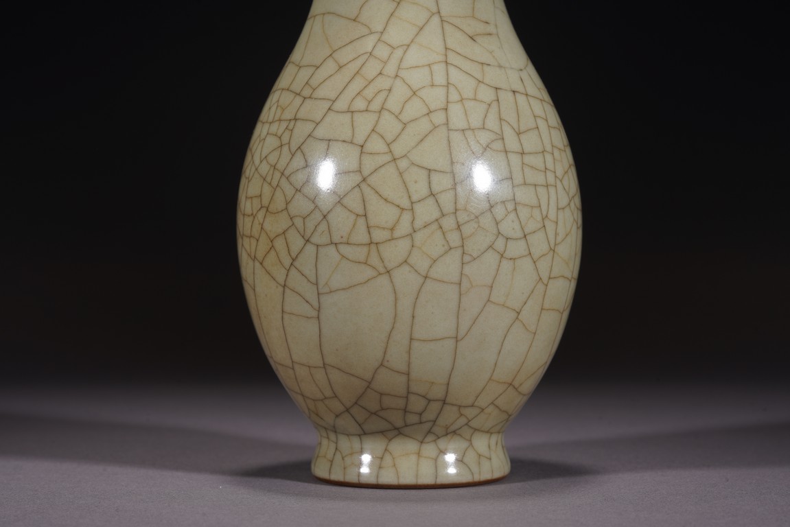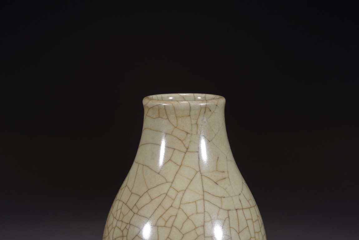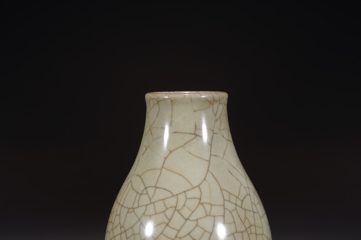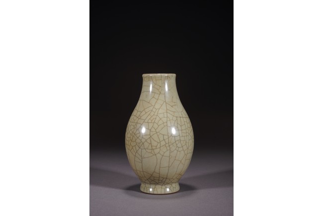 Of pear shape, overall suffused with soft greyish glaze suffused with a matrix of crackles, base bears reign mark.