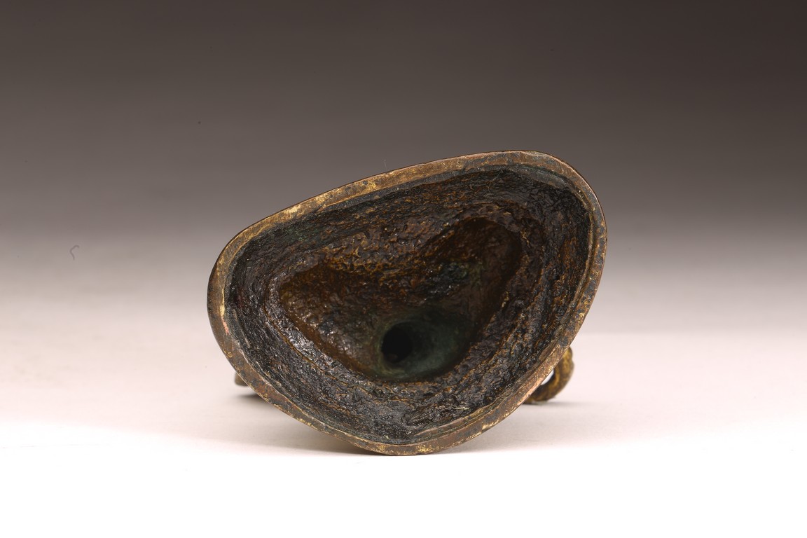 菩薩頭戴寶冠,耳上佩戴寶相花耳環,耳側有 U 形發帶向上翻卷。面形圓潤,高額隆鼻小 嘴,形象祥和端莊。上身半露,左手施“說法印”,右手也施“說法印”置於膝蓋之上,下身著 裙,衣紋流暢輕柔,優美自然,雙腿跌伽安坐蓮瓣之上,形製大方、穩重,蓮瓣寬大飽滿。