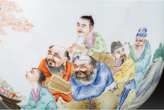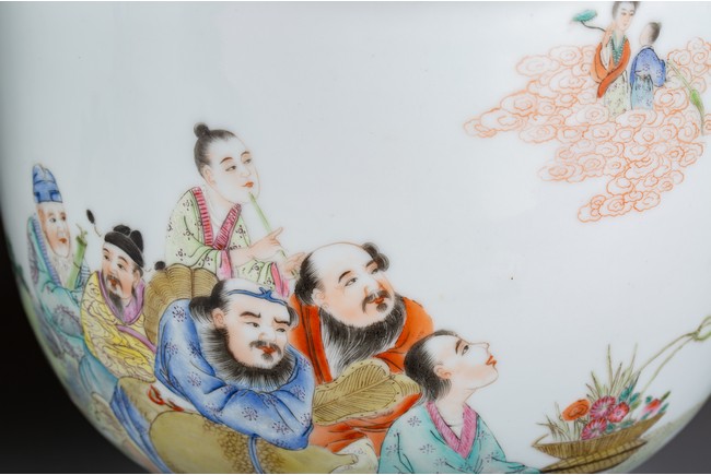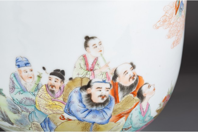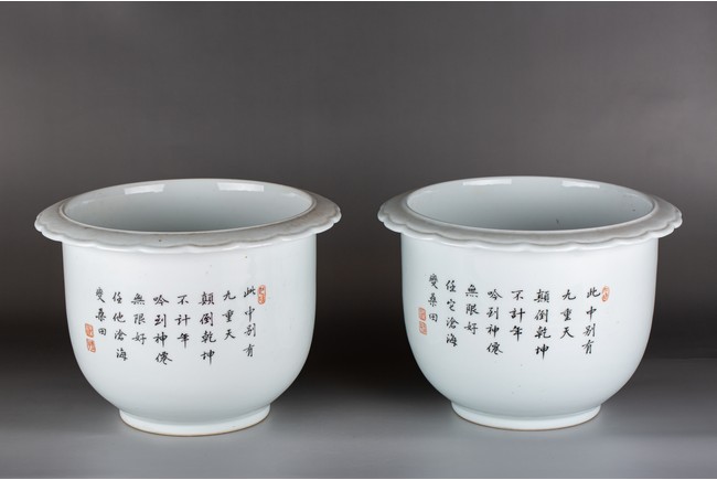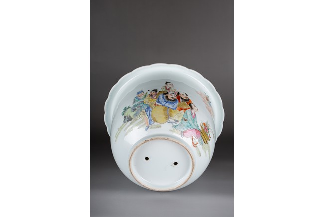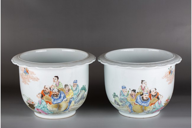 A PAIR OF CHINESE FAMILLE ROSE FIGURES PLANTERS 粉彩八仙人物紋花盆一對