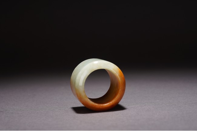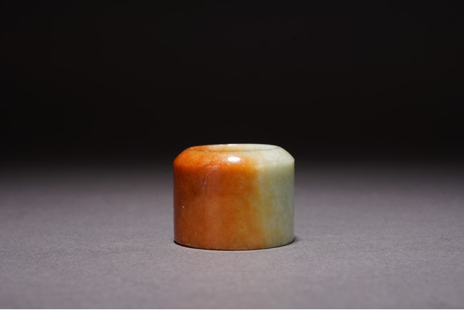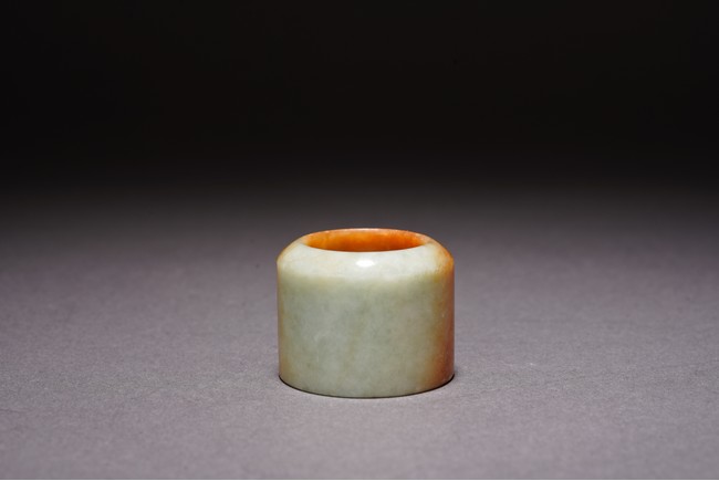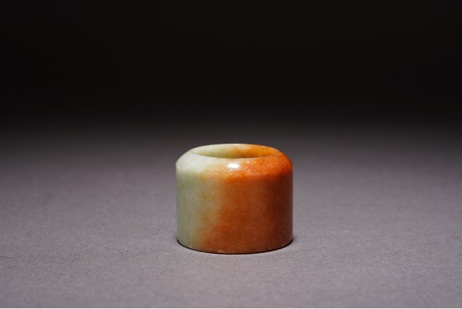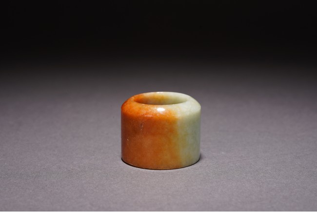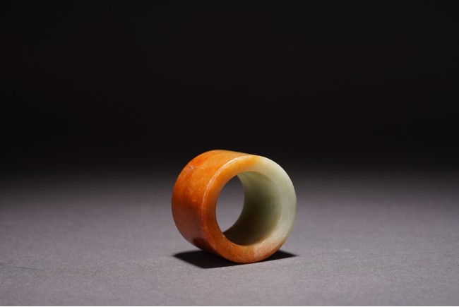 Chinese. The archer's ring is of mottled orange and greenish white tone. Qing Dynasty period.