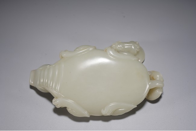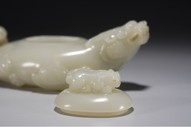 此件作品造型古樸典雅,色澤晶瑩溫潤,質感通透,工藝採用高浮雕、圓雕、刻工細緻、玉質油潤、瑞獸五官精緻,紋路清晰生動形象,品相完美。