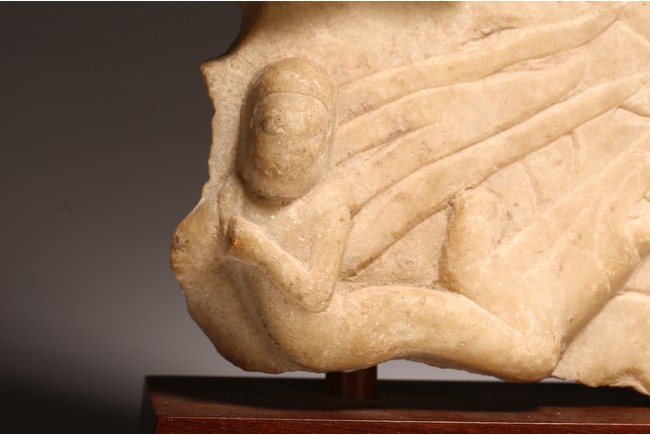 石質白淨無暇,質地堅硬細密。所雕刻飛天體態輕捷,豐姿秀麗,作騰飛狀,飛勢飄逸輕盈。 來源:聖何塞私人收藏 Provenance: Property from a San Jose private collection