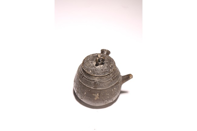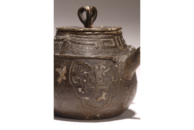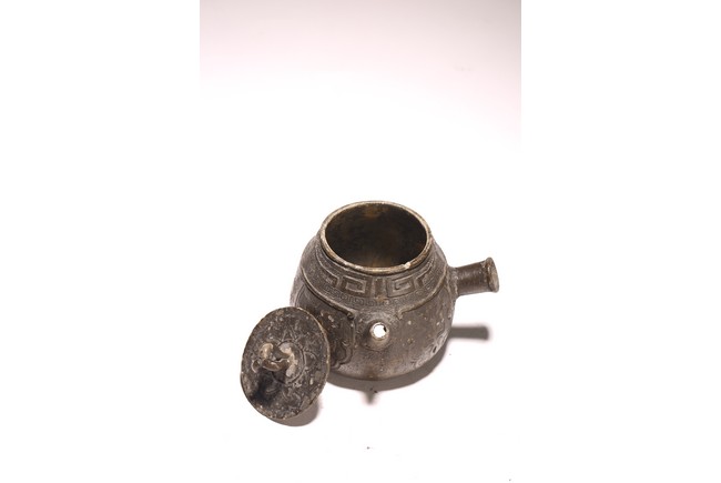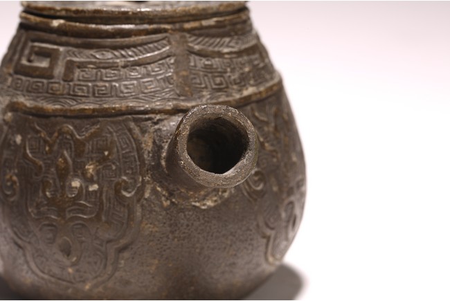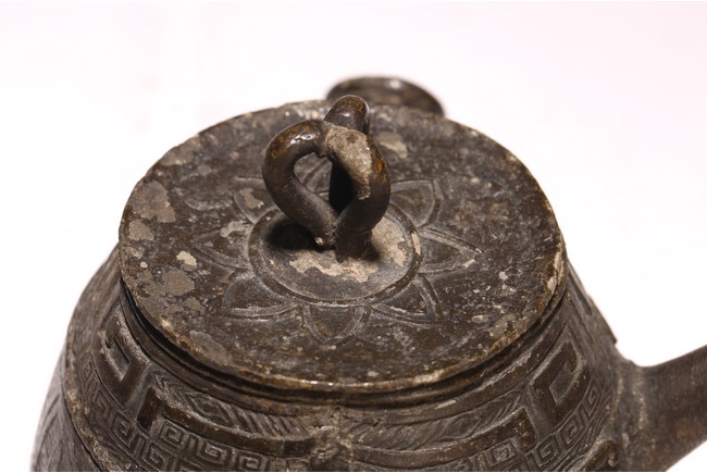 銅製而成,銅質優良,帶蓋,子母口,壺嘴小巧,器身飾“迴紋”“獸面紋”,紋飾清晰,排列規矩。 來源:密蘇裡州堪薩斯城私人收藏 Provenance: Property from a Kansas City, Missouri Family Estate