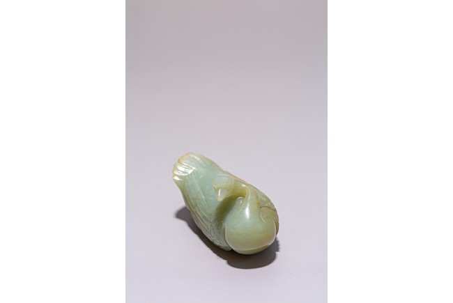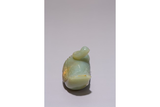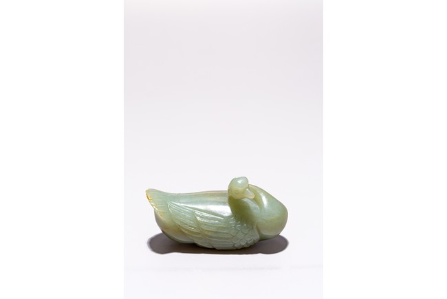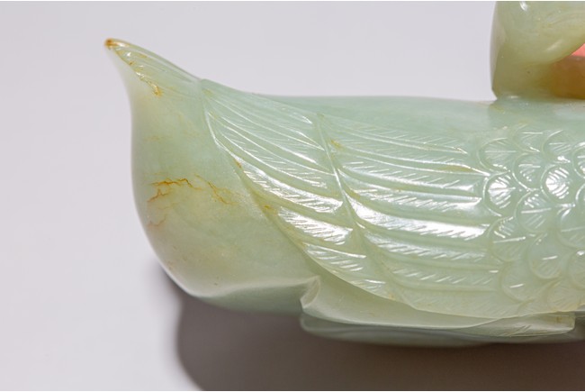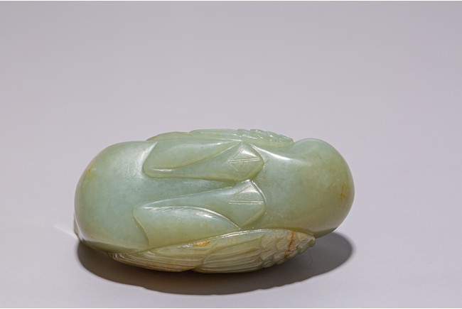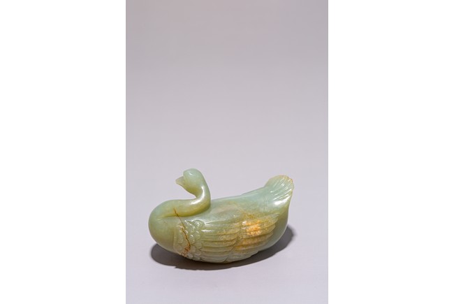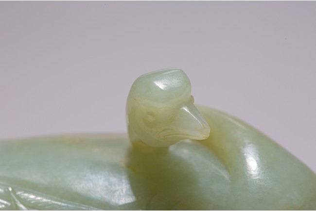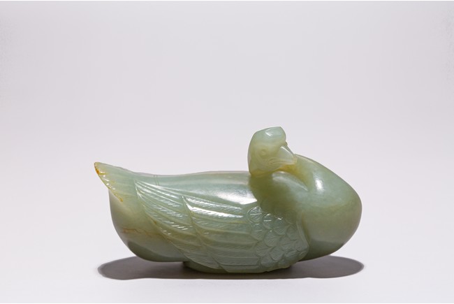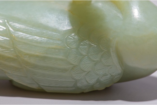 Chinese. Worked as a goose with the head turned to the side, flanked by a pair of incised wings. Qing Dynasty period.