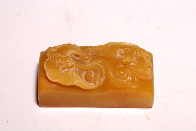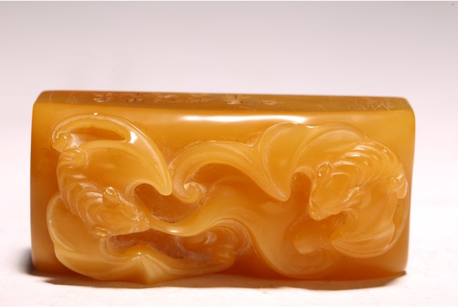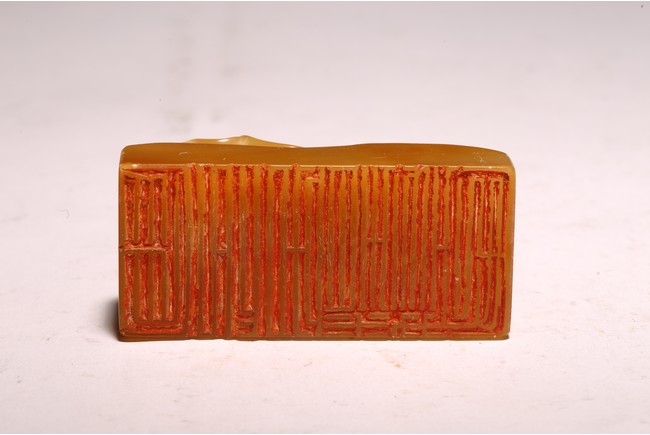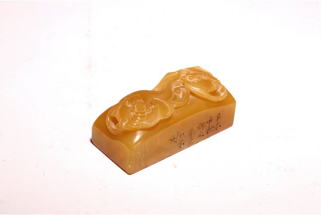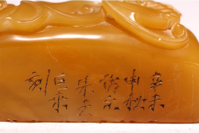 Chinese. Of rectangular form, the side inscribed with inscriptions attributed to Chen Julai. The top carved with pair of bats. The underside further carved with inscriptions.