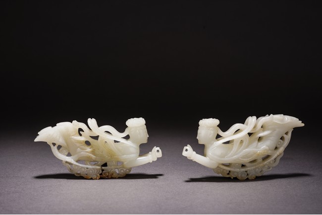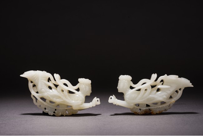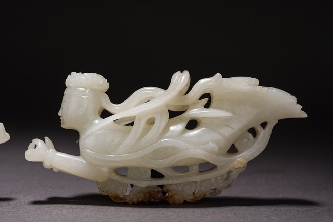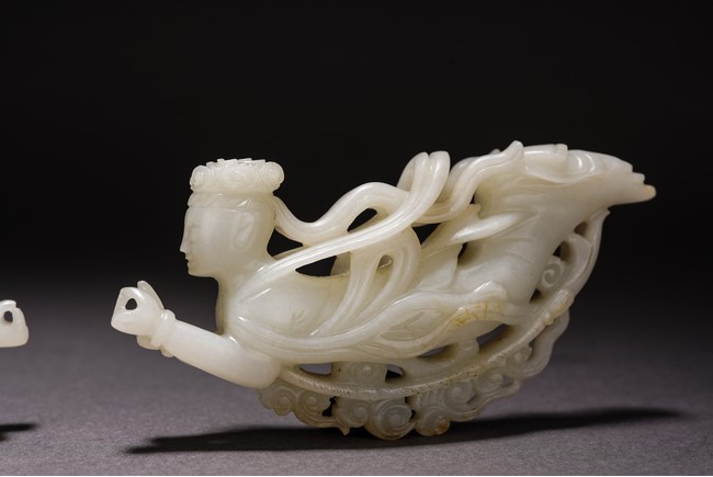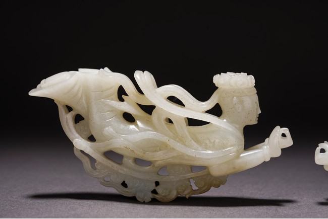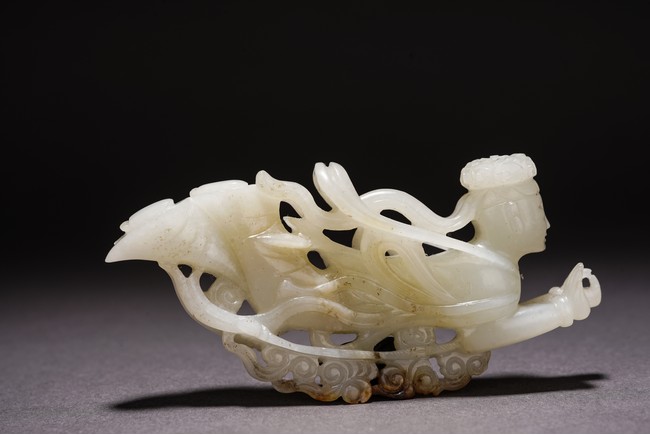 Chinese. Delicately carved and pierced to depict the flying angle, 'asapara' from the Chinese mythology. Song Dynasty period or later.