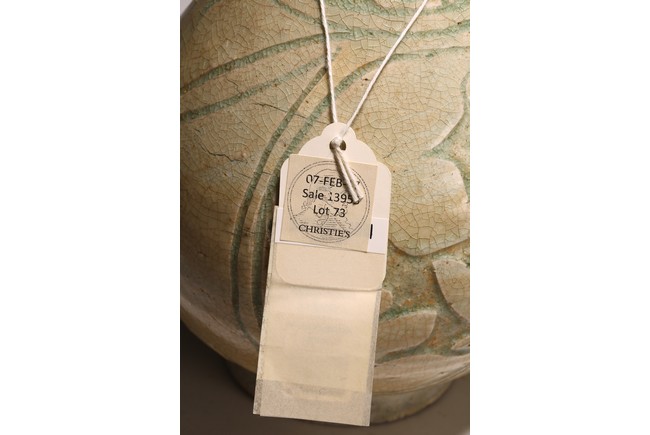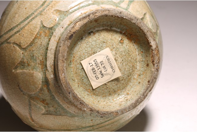 撇口,細長頸,鼓腹下收,圈足。胎體細薄,釉色均勻,刻花清晰,花葉婉轉自如,搖曳生姿,尤為優雅灑脫,氣韻非凡。 來源:密蘇裡州堪薩斯城私人收藏, 購於紐約佳士得2017年 Provenance: Property from a Kansas City, Missouri Family Estate, acquired in Christie's New York, Feb,7,2017, Lot 73
