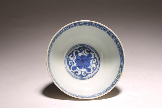 侈口,弧形淺壁,矮圈足,胎質細膩,碗心青花繪“花卉紋”,枝蔓翻捲,婀娜多姿,青花髮色濃郁。 來源:密蘇裡州堪薩斯城私人收藏 Provenance: Property from a Kansas City, Missouri Family Estate