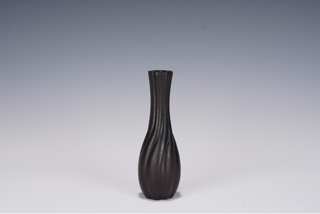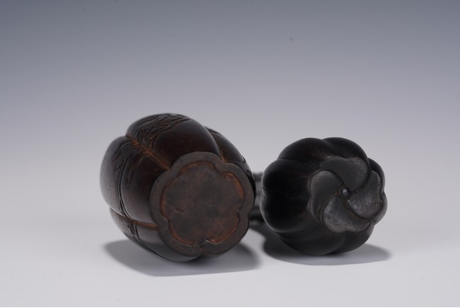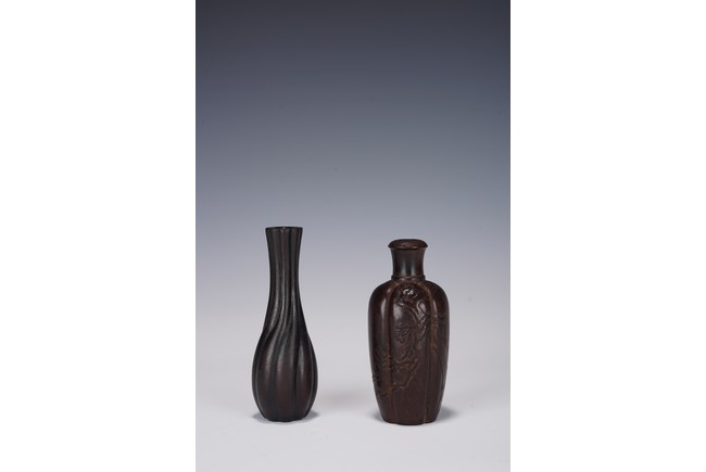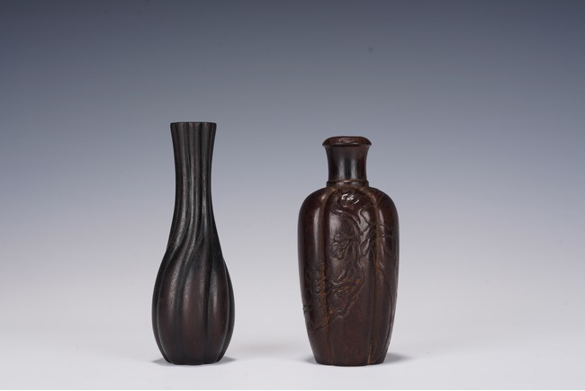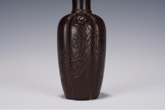 Chinese. Comprising of a a small lobed vase and a lobed vase carved with in relief with plum blossoms. Republic period.