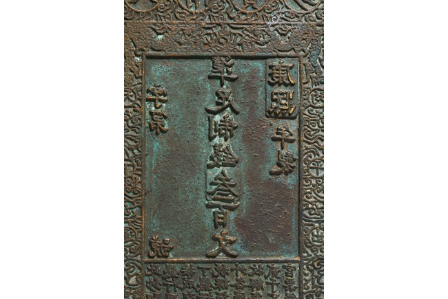 Chinese. Of rectangular form, the mold cast with inscriptions dated to Kangxi period. Qing Dynasty period.