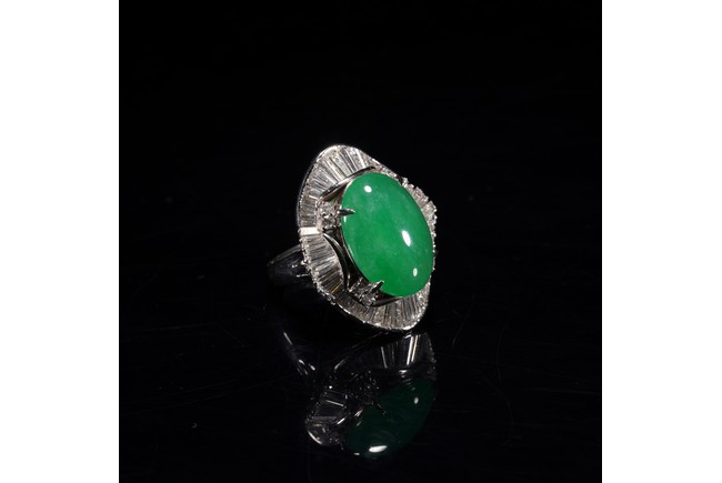 TYPE A CHINESE TRANSLUCENT BRIGHT GREEN JADEITE RING 玻璃種翡翠戒指 保證A貨