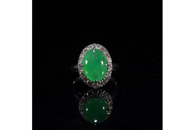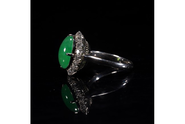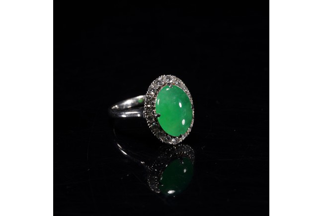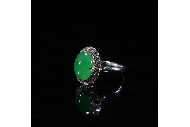 TYPE A CHINESE GLASSY BRIGHT GREEN JADEITE RING 玻璃種翡翠戒指 保證A貨